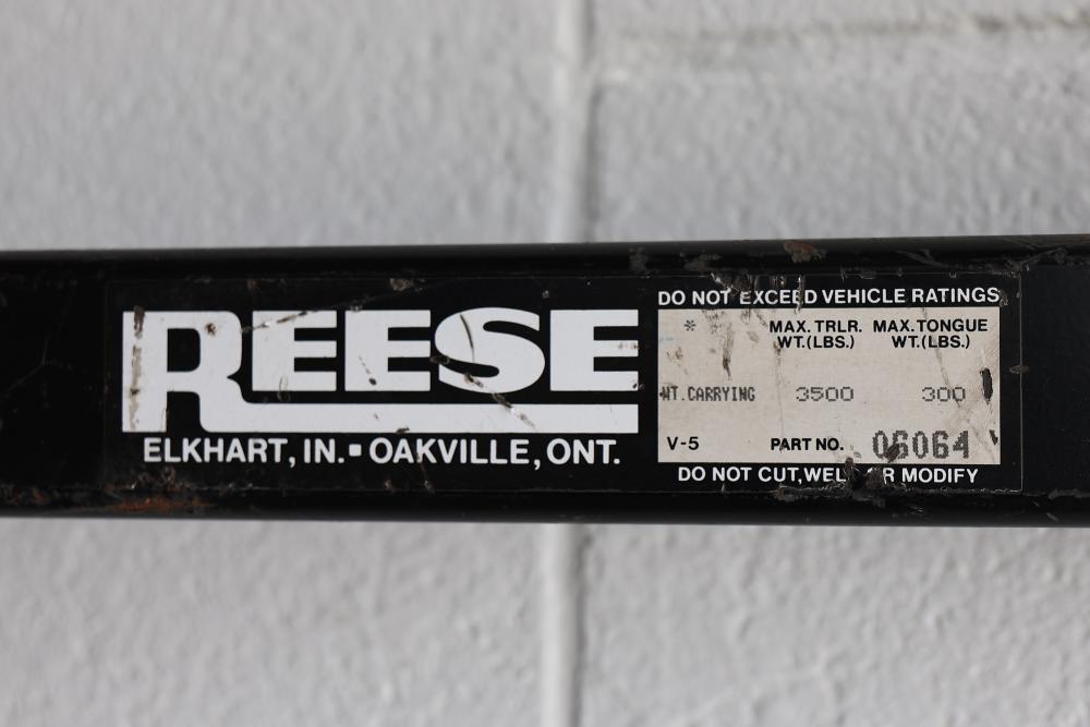 Reese V-5 Trailer Hitch with 1.25-Inch square receiver opening and a hitch length of 40.25 inches. Maximum trailer weight capacity is 3500 lbs, with a maximum tongue weight of 300 lbs. Part number is 06064, as indicated on the label. Pickup only.