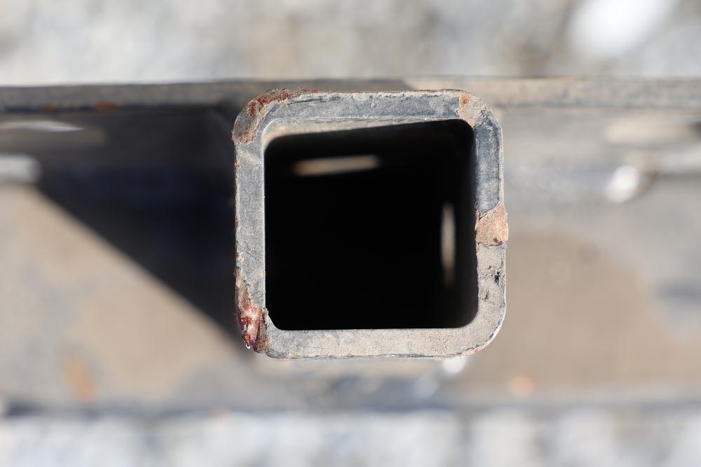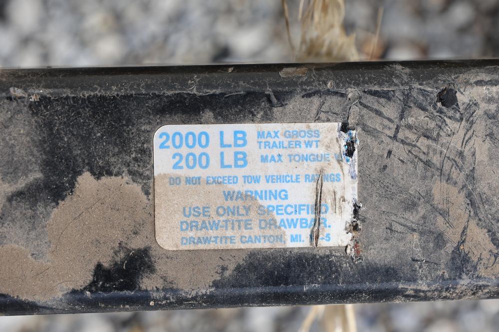 Trailer hitch featuring a 1.25-inch square receiver opening and a total length of 40.5 inches. The hitch is rated for 2000 lb maximum gross trailer weight and 200 lb maximum tongue weight. It includes clear labeling and is in used condition. Classified as a V-5 trailer hitch. Pickup only.