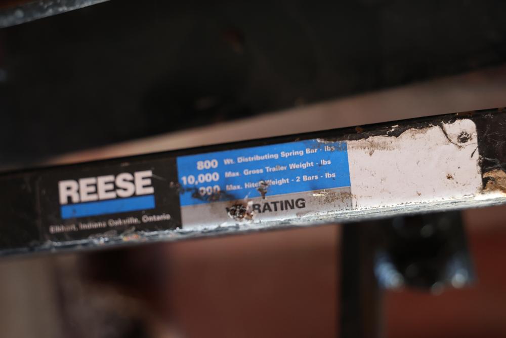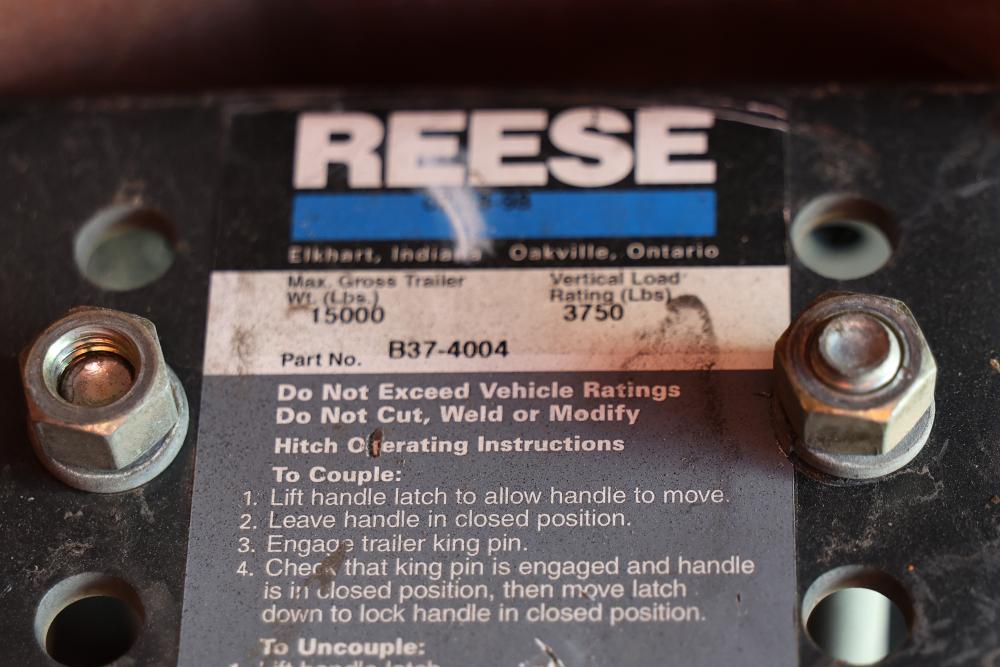 Various Sizes of Trailer Hitch Accessories. Includes components with branding such as Reese and model details like B37-4004 with a maximum gross trailer weight of 15,000 lbs and vertical load rating of 3,750 lbs. Other weight specifications shown include 800 lbs distributing spring bar weight and 10,000 lbs gross trailer weight. Pickup only.