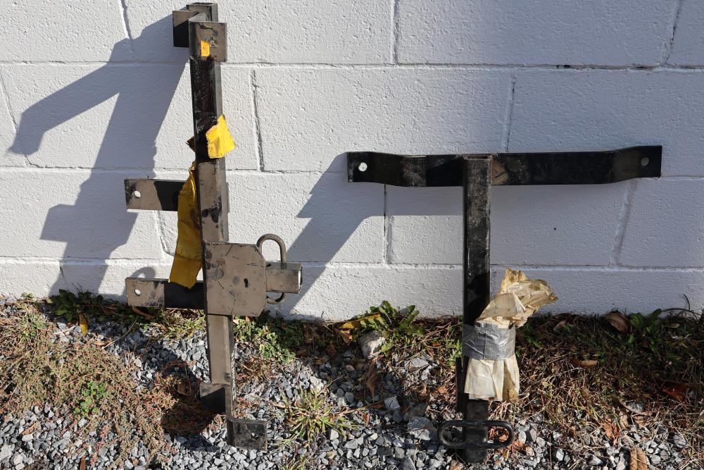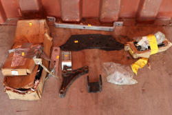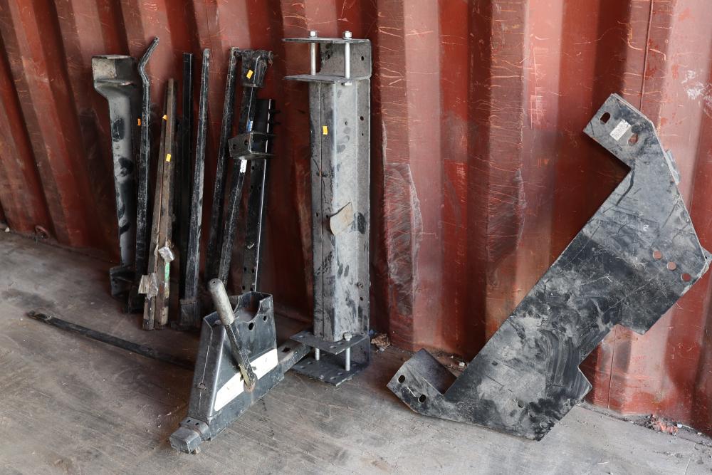 Automotive Spacer and Metal Components such as CM-2417-E E4TZ-9A589-H. Includes various metal parts and pieces, some in original packaging showing wear. Markings on label indicate part number and model details. Components appear to include spacers, brackets, and other metal items for automotive trailer hitch applications. Pickup only.