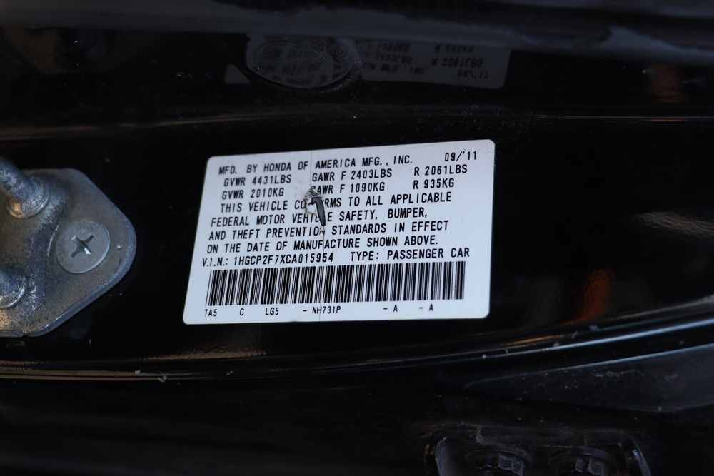 2012 Honda Accord. VIN: 1HGCP2F7XCA015954. Odometer reading: 186848. Seller reports: Does not run/drive, BROKEN FRONT AXEL, ROTTED, NEEDS REPAIR, SITTING 5+ YEARS. Title & key available. Asset #: TF5954.