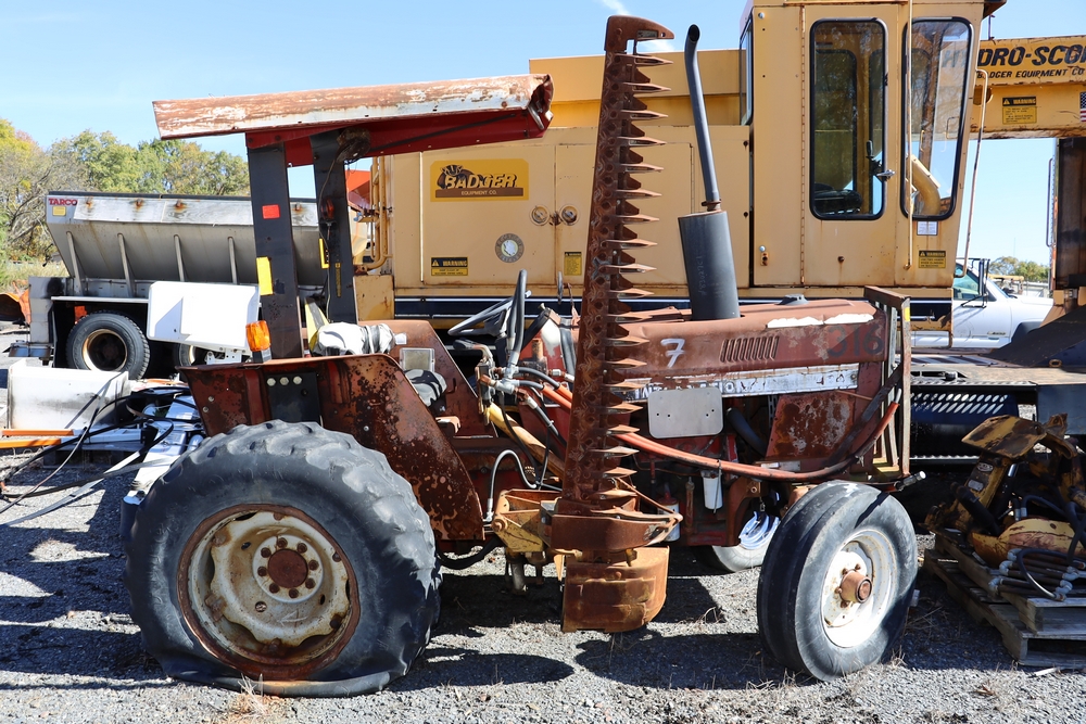 1984 International I484. SN: B009740. Hours reading: 5052hr. Seller reports: Does not run/drive, sitting 5+ yrs, missing sickel bar hydraulic motor and other parts/ no 3pt hitch. Title available, no key. Asset #: 1316A.