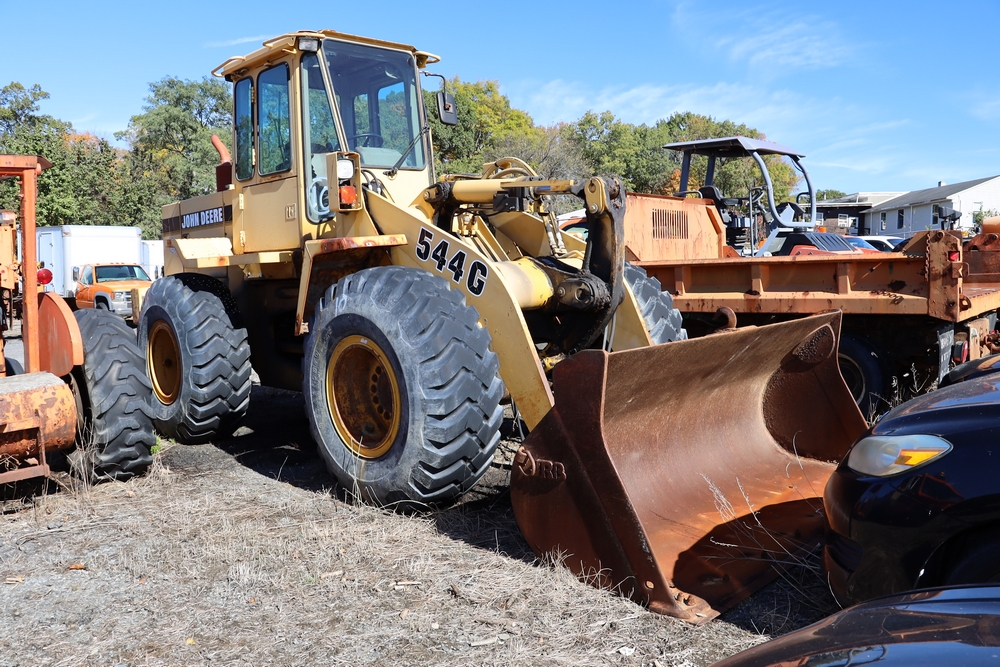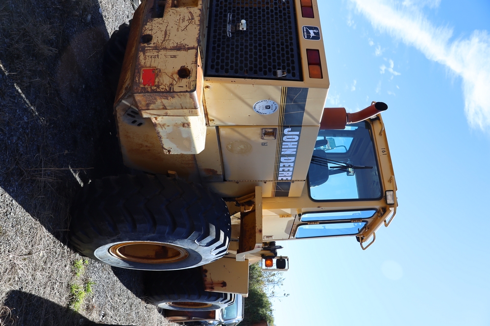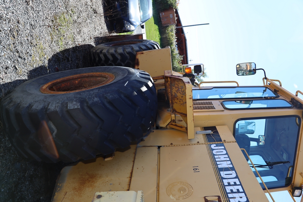 1993 John Deere loader 161. SN: K52159. Hours reading: unk. Seller reports: Does not run/drive, Engine knock, engine issue. No key. Asset #: 1161.