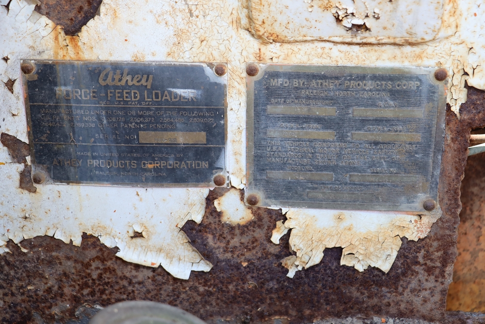 1974 Athey 7-11-D. SN: 666121. Hours reading: 2855hr. Seller reports: Does not run/drive, unknown condition , been sitting 10 + years , not running or working, rough shape. Title & key available. Asset #: 1010A.