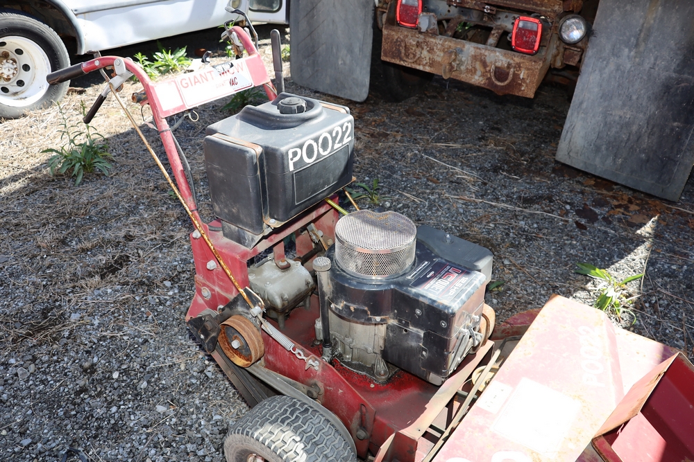 (2) Giant Vac mowers, SN: 9312214B, 960719ZB. Giant vac. SN: 9312214B. Seller reports: Does not run/drive, not running, missing parts.