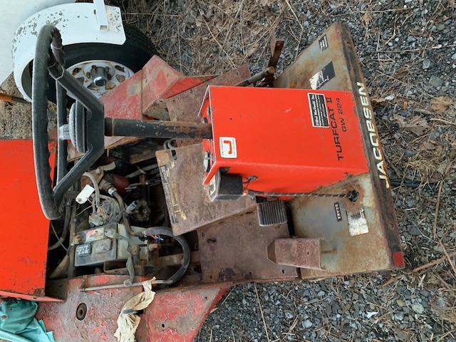 Jacobson mower. TURFCAT T436G, SN: CP5-2-2603/CP577-2-2085. Hours unknown. Nonoperational, missing parts, no engine. Asset #: BG002/BG004.
