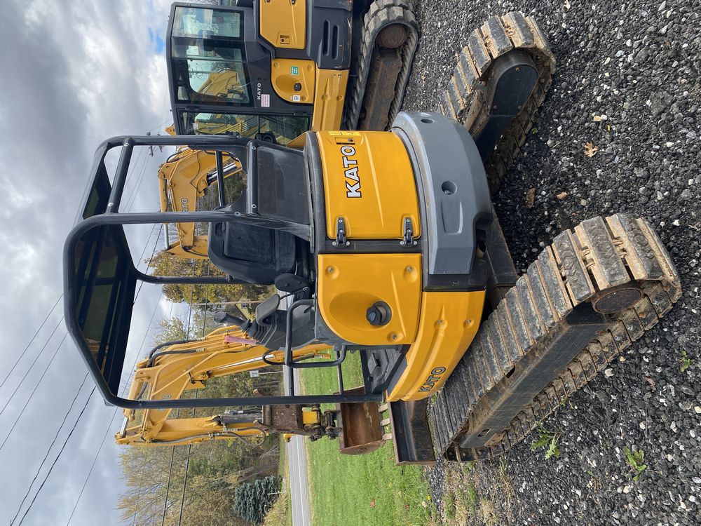 Items include 2019 Kato HD85 V4 Excavator; several 2019 Kato HD35 V4 Excavators; 2019 Kato HD30 V4 Excavator; MK Martin Snow Blower; Fisher 7'6" Snow Pow & Broyhill Stadium Vac. Items are located in Accord, NY.