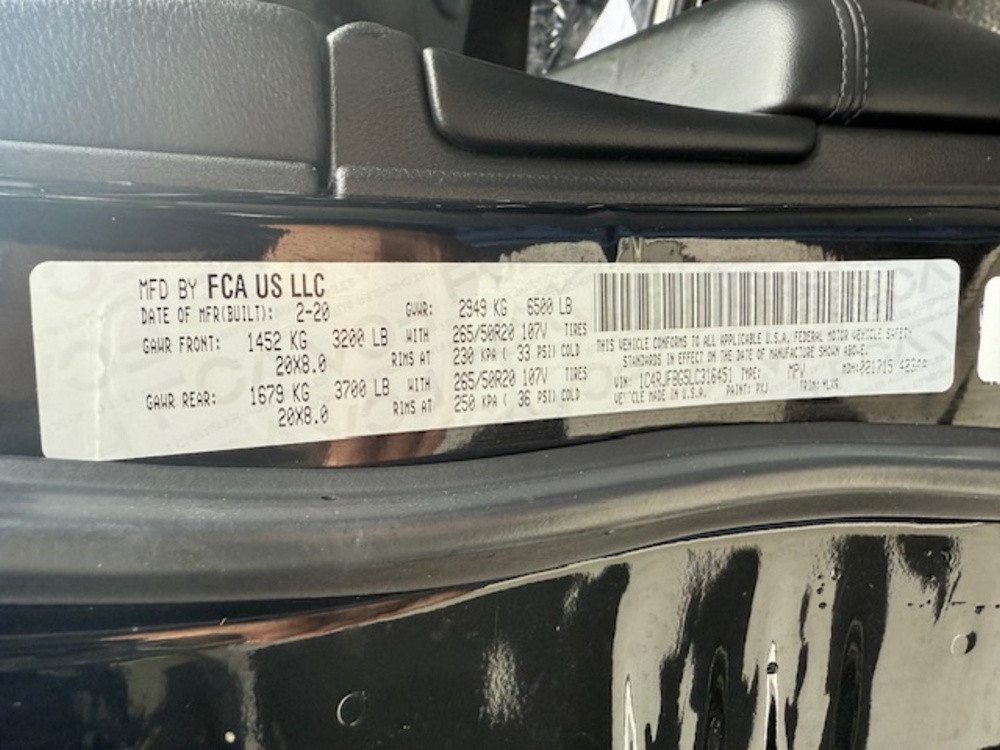 2020 Jeep Grand Cherokee with a 3.6L V6 DOHC 24V engine. VIN: 1C4RJFBG5LC316451 Odometer reading: 56929 Seller reports: Grand Cherokee Limited X , Runs & Drives Like New. These vehicles are being transferred through NJ Dealer paperwork.