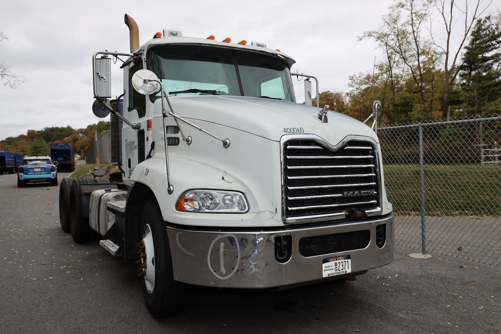 Items include 2011 Mack Pinnacle CXU613 tractor; 2004, 2006, 2008 & 2010 SPEC/TEC ejector trailers & roll of containers. Items are located in Yonkers, NY.