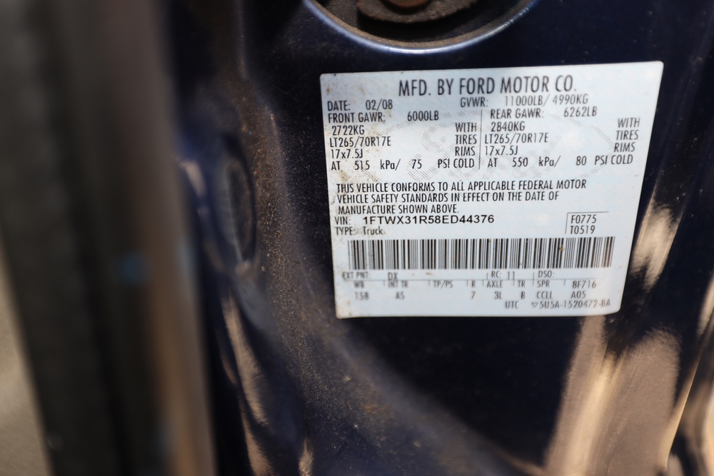 2008 Ford F-350 Super Duty. VIN: 1FTWX31R58ED44376. Body: Extended Cab 4D. Engine: 6.4L V8 CRDI Diesel. Odometer reading: 104357. Seller reports: runs, needs jump, blows smoke, gas tank falling off. Title & key available.