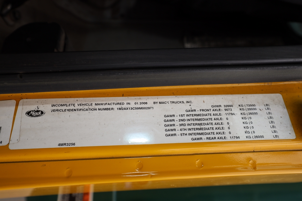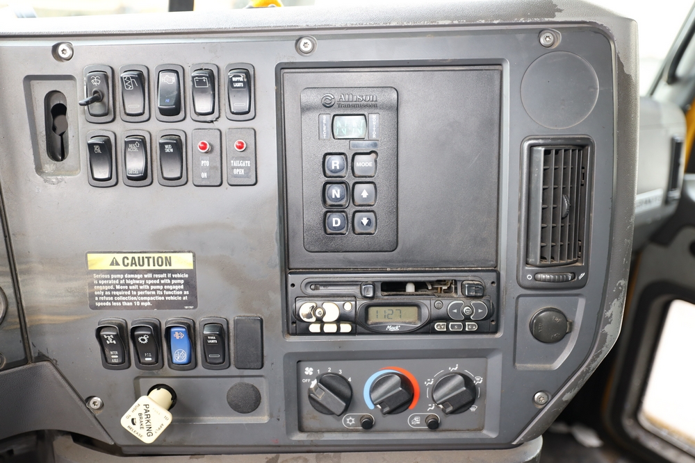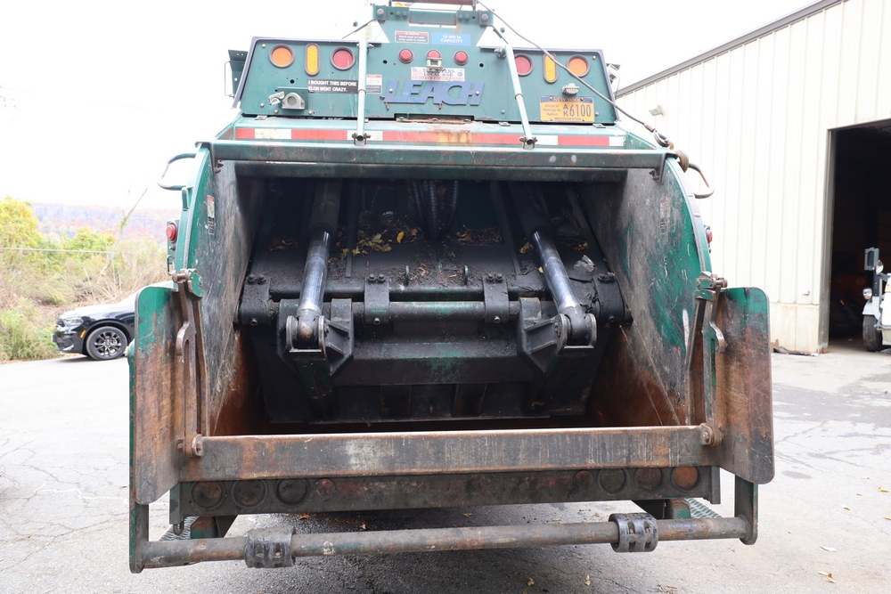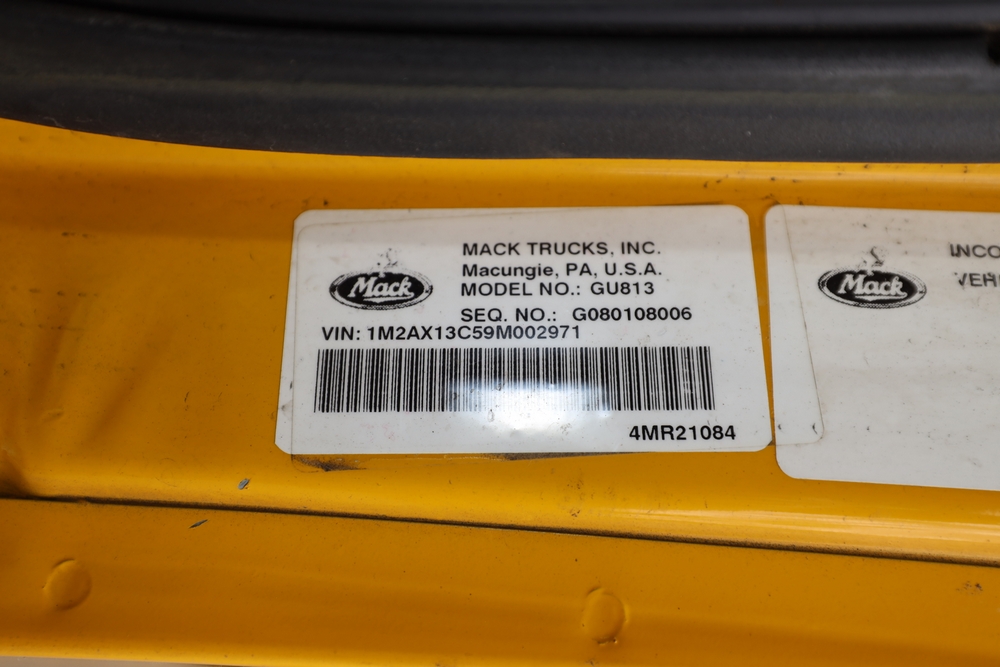 2009 Mack Granite GU813 Garbage Truck with Leach. VIN: 1M2AX13C59M002971. Leach 20 yard rearload packer body. Allison transmission. Body: Chassis 2D. Engine: 10.8L I6 DI Diesel. Odometer reading: 82637. Hours reading: 20001. Seller reports: Runs, drives, operates. Title & key available.