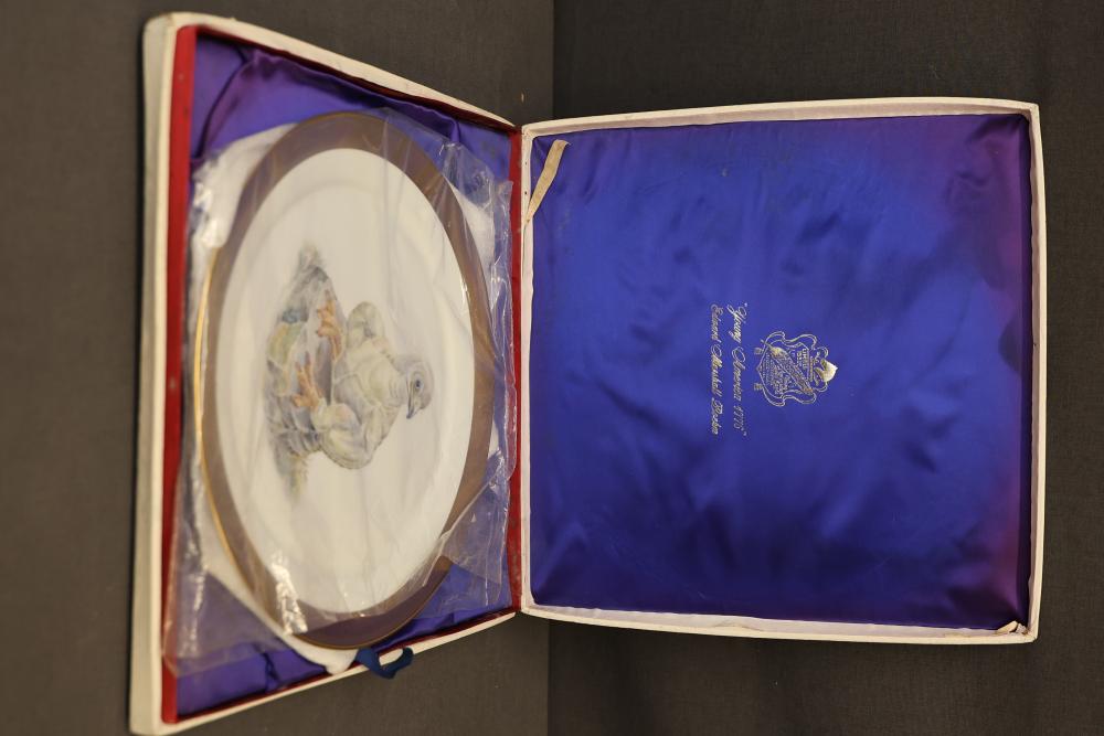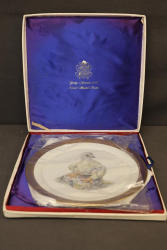 Young America 1776 Plate by Edward Marshall Boehm. Limited edition fine porcelain plate featuring a young bald eagle with a detailed gold border. Includes original box, documentation, and protective materials. Created to symbolize the Nation's aspirations of independence and peace. Plate has a 1973 stamped issue date. Pickup only.