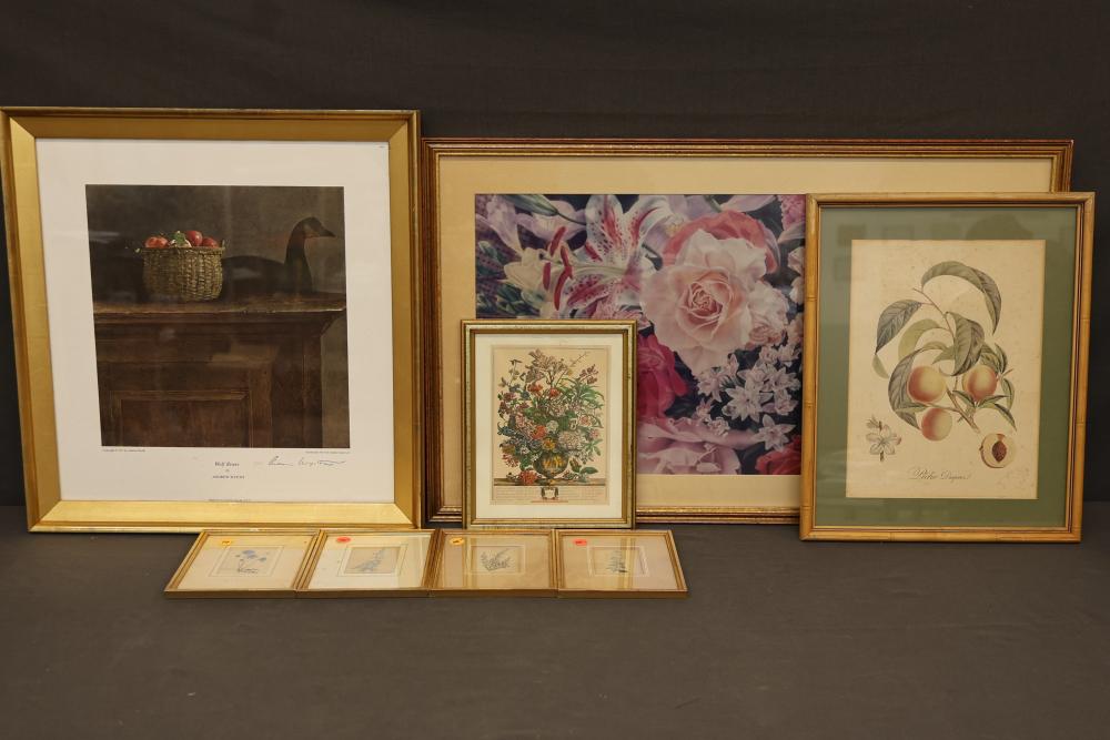 Framed Artworks Including Botanical Prints and Floral Compositions. Assortment of framed prints and paintings showcasing various botanical and floral designs. Includes a peach botanical, colorful floral pieces, and limited edition works. Pickup only.