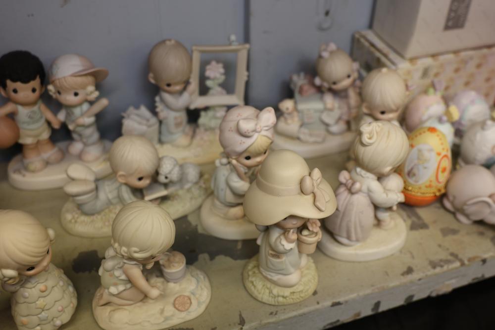 Approximately 200 Precious Moments figurines, many with original boxes. Includes a variety of designs, such as children engaged in activities, posed with animals, and themed holiday pieces. Some figures include accessories like musical instruments, decorative elements, or additional small figurines. Pickup only.