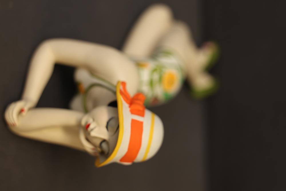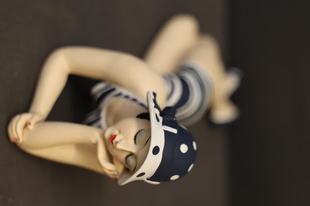 Six Figurines of Women in Vintage Swimwear. Includes six finely crafted figurines showcasing women in striped and patterned swimsuits, paired with coordinating hats and shoes. Each figurine is posed differently, highlighting individual detailing in posture and attire. Pickup only.