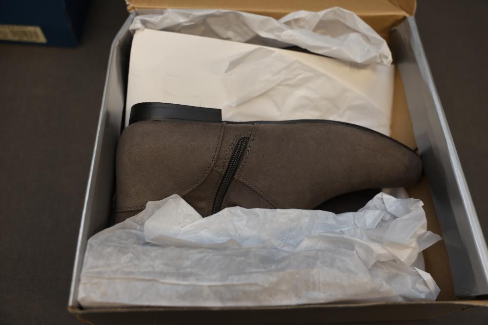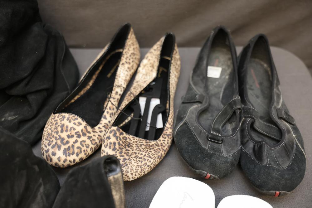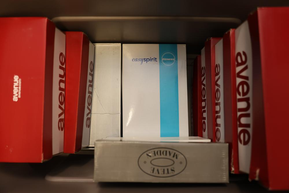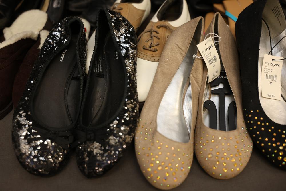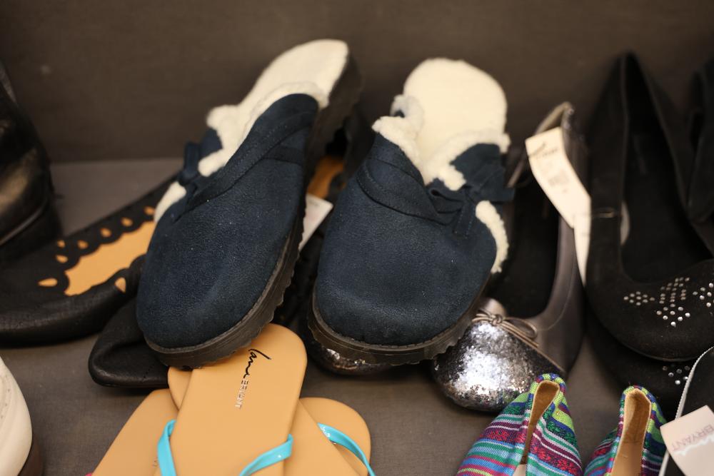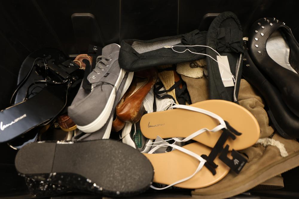 Women's and men's shoes, including New Balance running shoes (sizes 11.5 and 12 displayed), Easy Spirit slippers, Avenue boots, and a variety of other brands. Includes athletic shoes, flats, sandals, boots, and loafers. Pickup only.