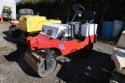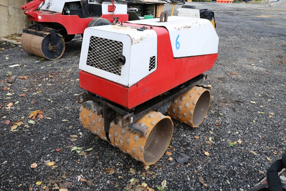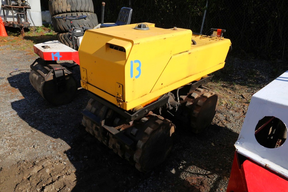Dynapac style Trench Roller, Model Unknown, Serial #Unavailable. Hour Meter Reading: 361 hours. Approximate Weight: 3,000 lbs. Remote-Controlled Padfoot Compaction Roller powered by Hatz Diesel Engine. Dual-Drum Design with Articulated Center Joint, Protective Engine Hood, and Control Panel with Hour Meter. Runs and operates as intended.