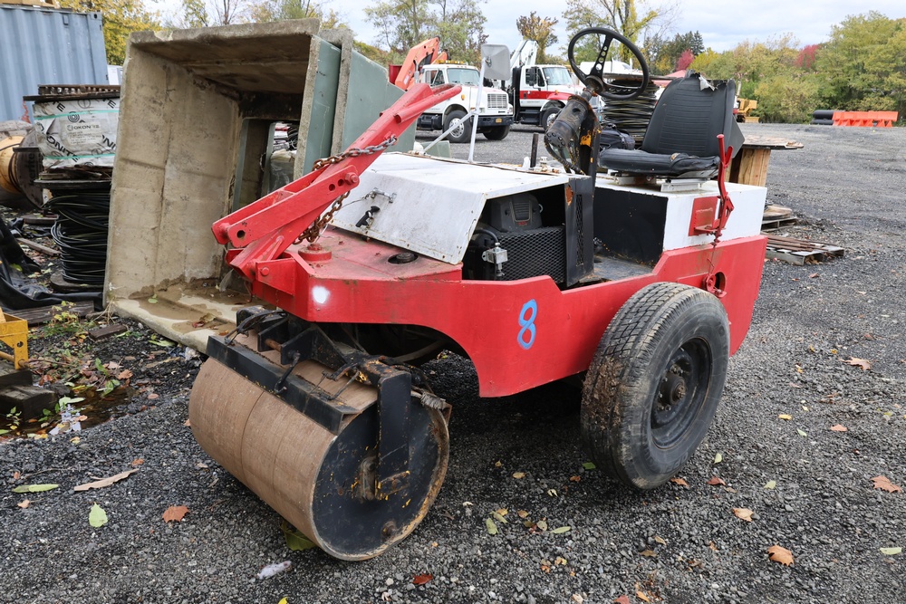 Items include Caterpillar 931B track loader; Vermeer V450 trencher; 1990 International 4900 flatbed truck; 2001 Ford F-550 dump truck; Daktronis portable message board trailer; 1989 International 4800 4x4 dump truck; Ingersoll Rand compactor; Coffing 2-ton electric chain hoist ; ride-on double drum roller; Yale forklift; Puckett Bros. Power Box asphalt paver; General Engines Co. roller; heavy duty CASE excavator bucket; Cat skidsteer eight lug rims; air compressor; tool boxes; heavy duty truck or trailer tires & more. Items are located in Stony, Point, NY.