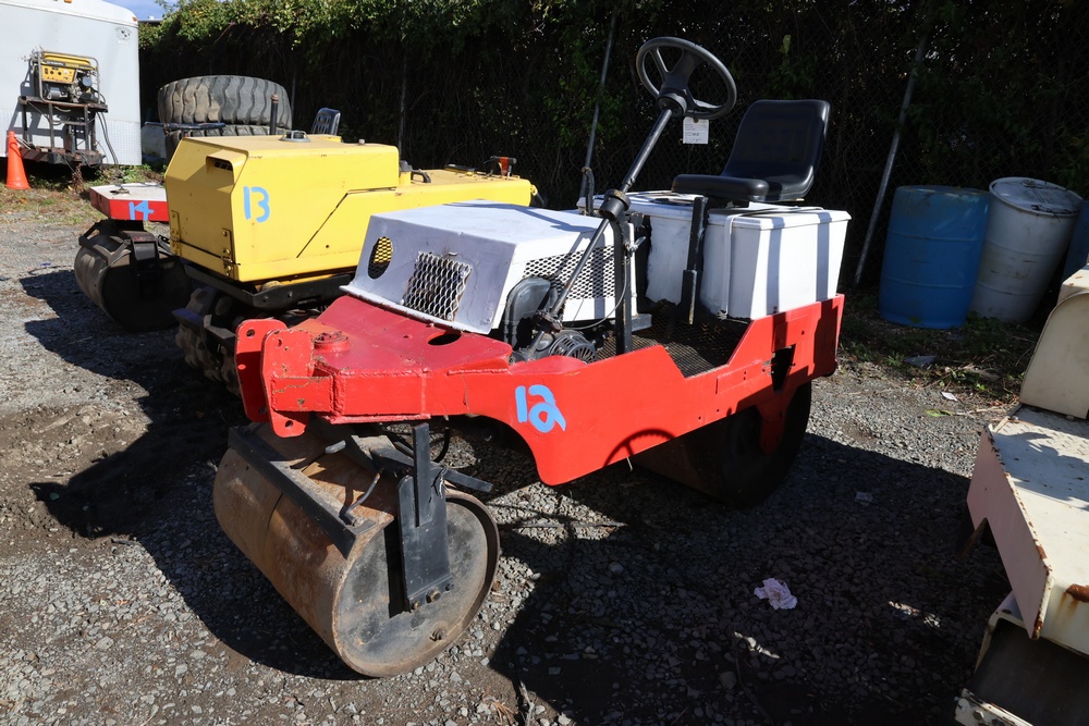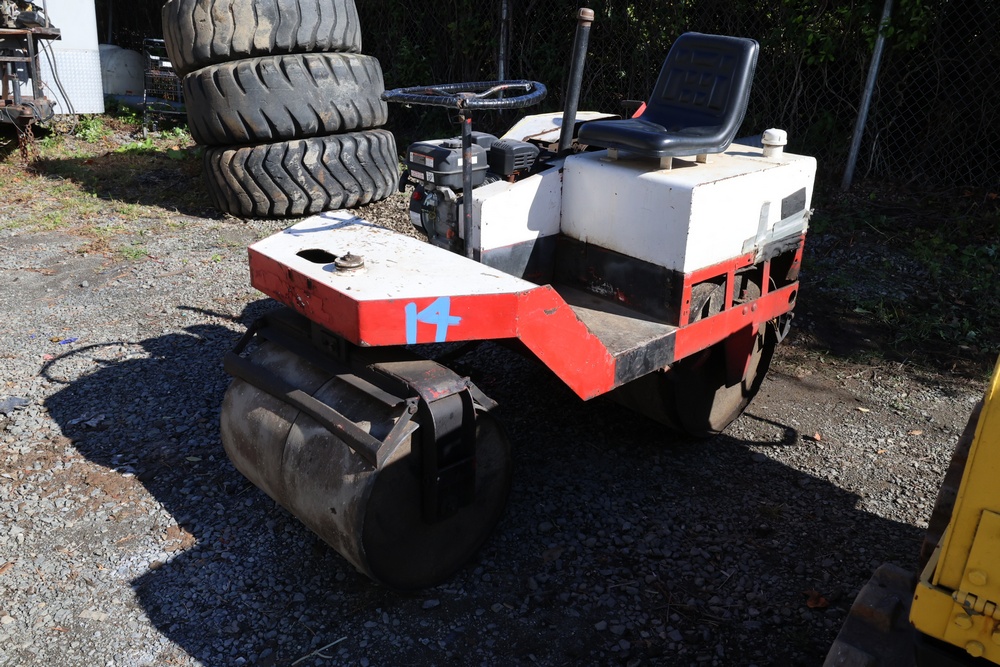 Ride-On Double Drum Roller, Serial #Unavailable. Hour Meter Reading: Not Equipped. Chain-Drive Compaction Roller powered by Predator 212cc Gasoline Engine. Open Operator Platform with Steering Wheel and Seat. Steel Smooth Drums, Red and White Painted Frame, Chain and Sprocket Drum Drive. Runs and operates as intended.