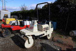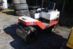 Ingersoll Rand DD-10ST Roller. Serial #01C161B09. Hour Meter Reading: Not visible. Ride-On Double Drum Roller with Smooth Steel Drums, Honda 20HP V-Twin Gas Engine, and Hydrostatic Drive. Open Operator Station with Seat and Control Levers. Runs and operates as intended.