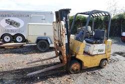 Yale Forklift, Model GLC030CNUAE072, Serial #N474013. Hour Meter Reading: 15,716 hours. Capacity: 3,000 lbs @ 24" Load Center. Truck Weight: 6,150 lbs. Equipped with LP Gas Engine, Pneumatic Drive Tires, Solid Steer Tires, and Two-Stage Mast with Standard Forks. Had been running, unknown issue. For parts or repair.