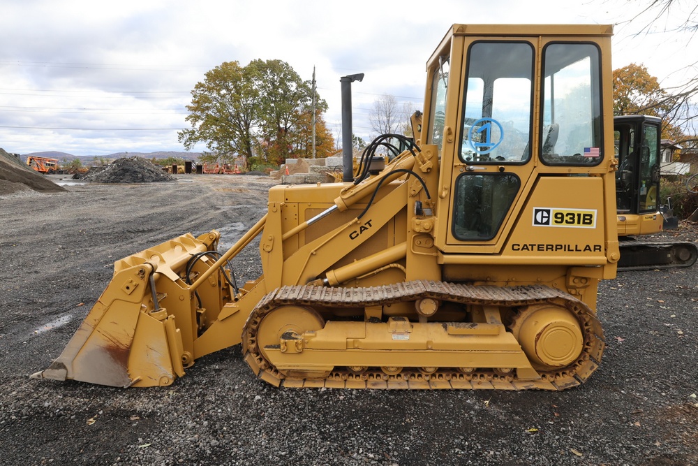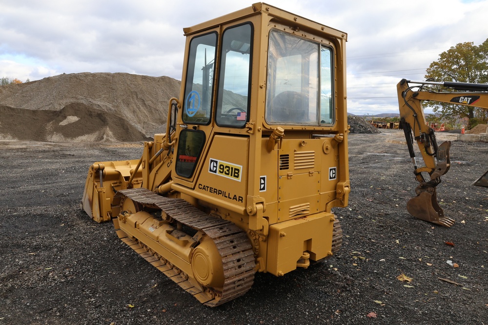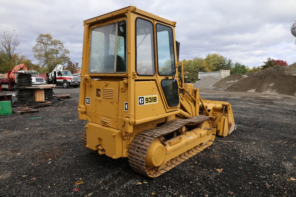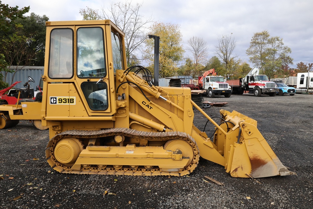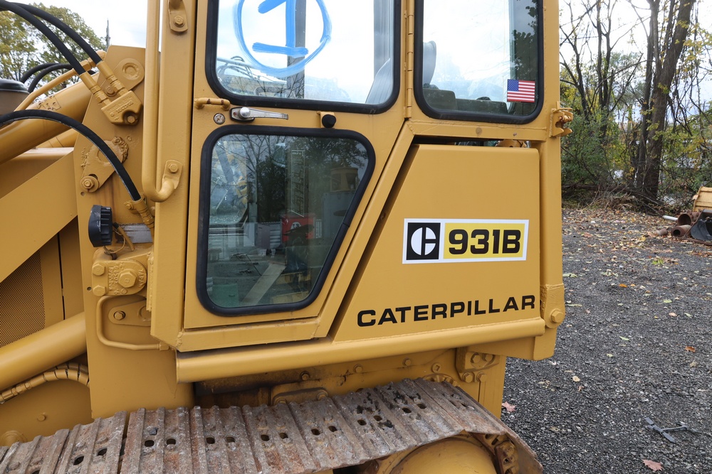 Caterpillar 931B Track Loader. Serial #29Y01910. Hour Meter Reading: 4,332. Enclosed Cab, Seat with Armrests, Control Levers, Steel Tracks, Front Loader Bucket. Powered by Caterpillar Diesel Engine. Runs and operates.