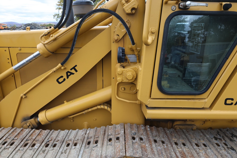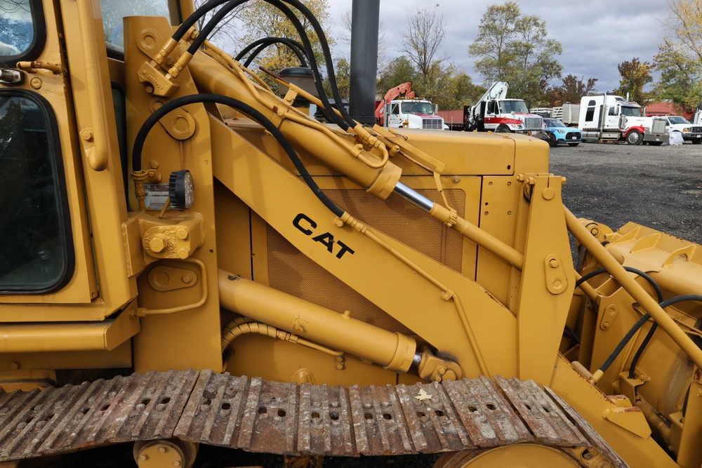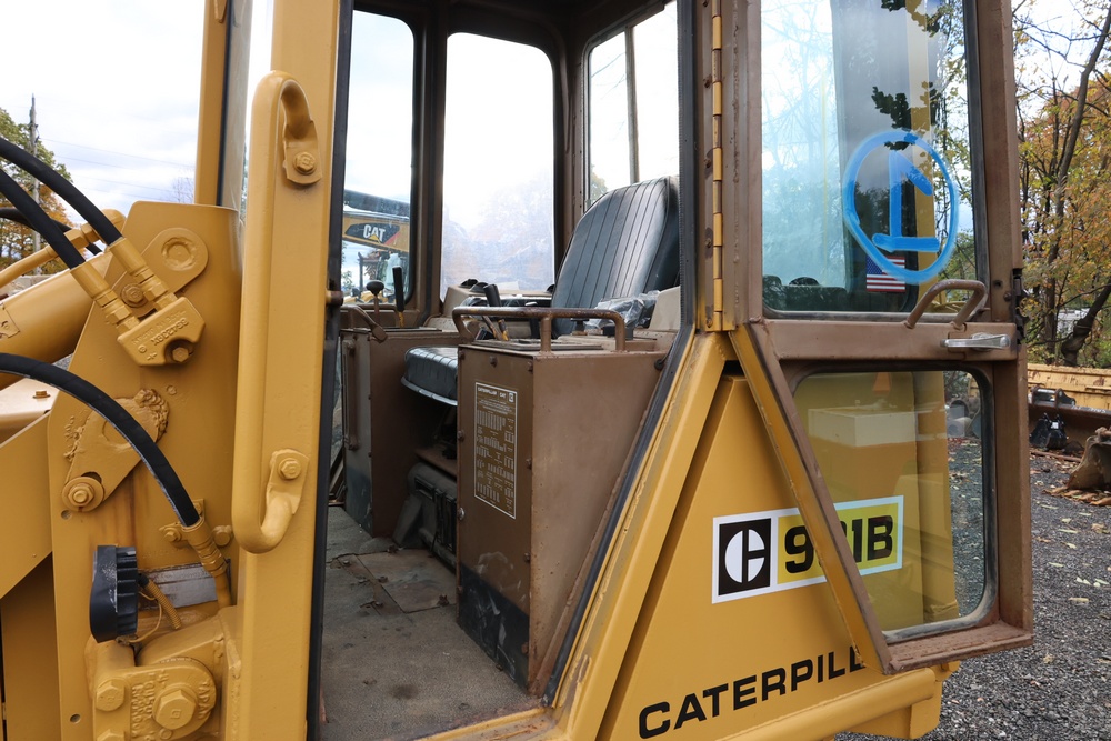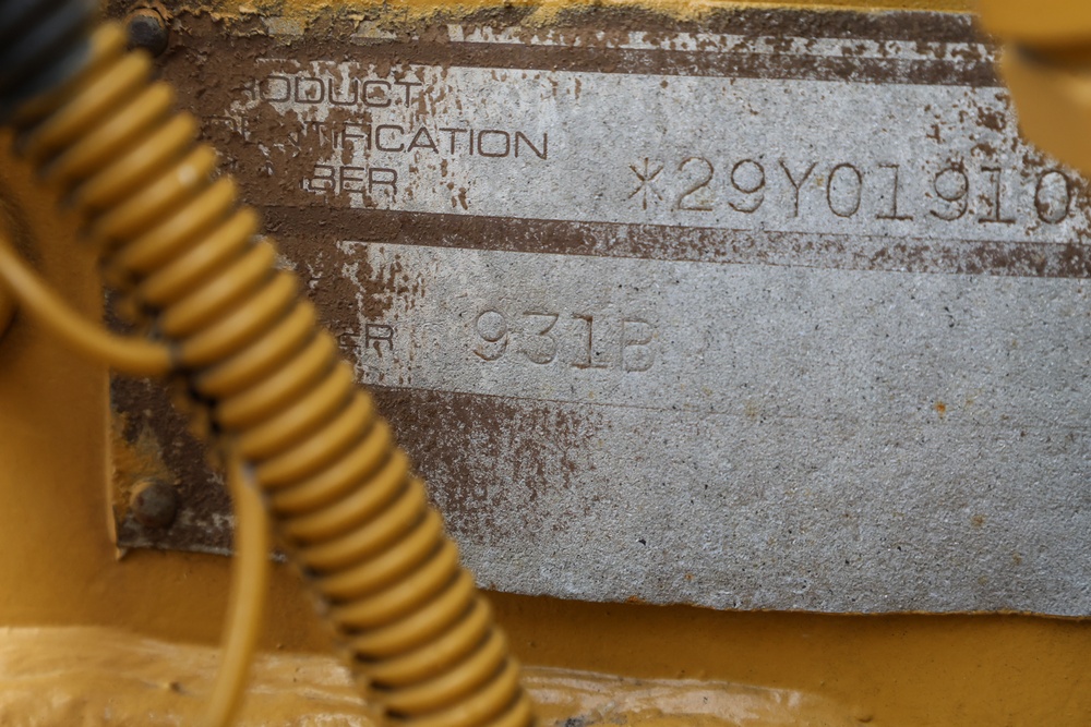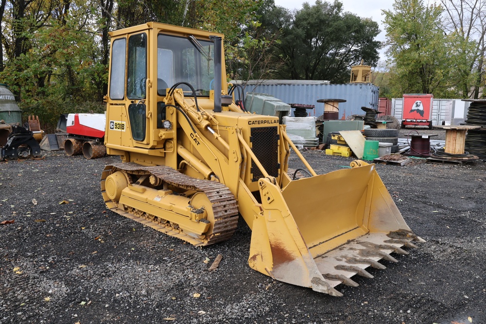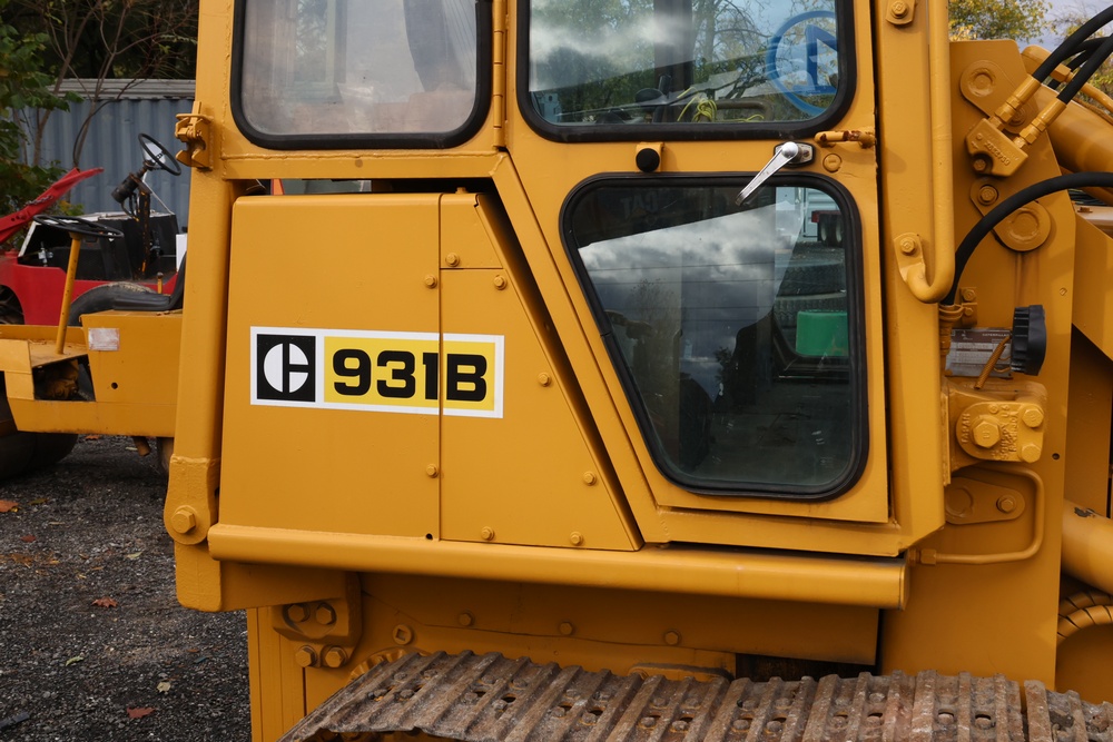 Caterpillar 931B Track Loader. Serial #29Y01910. Hour Meter Reading: 4,332. Enclosed Cab, Seat with Armrests, Control Levers, Steel Tracks, Front Loader Bucket. Powered by Caterpillar Diesel Engine. Runs and operates.