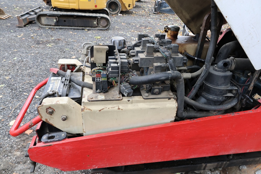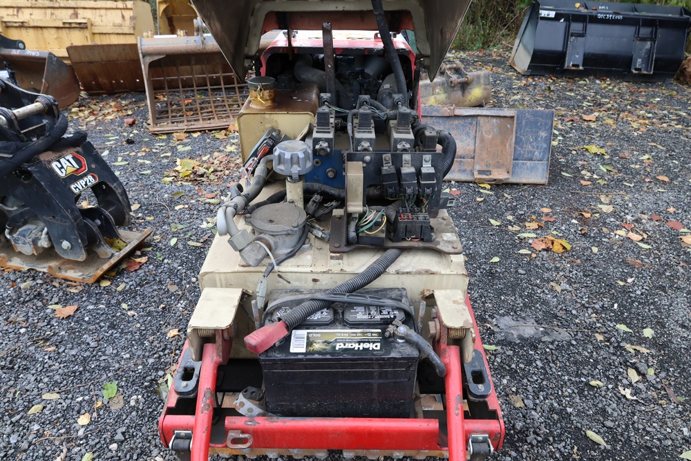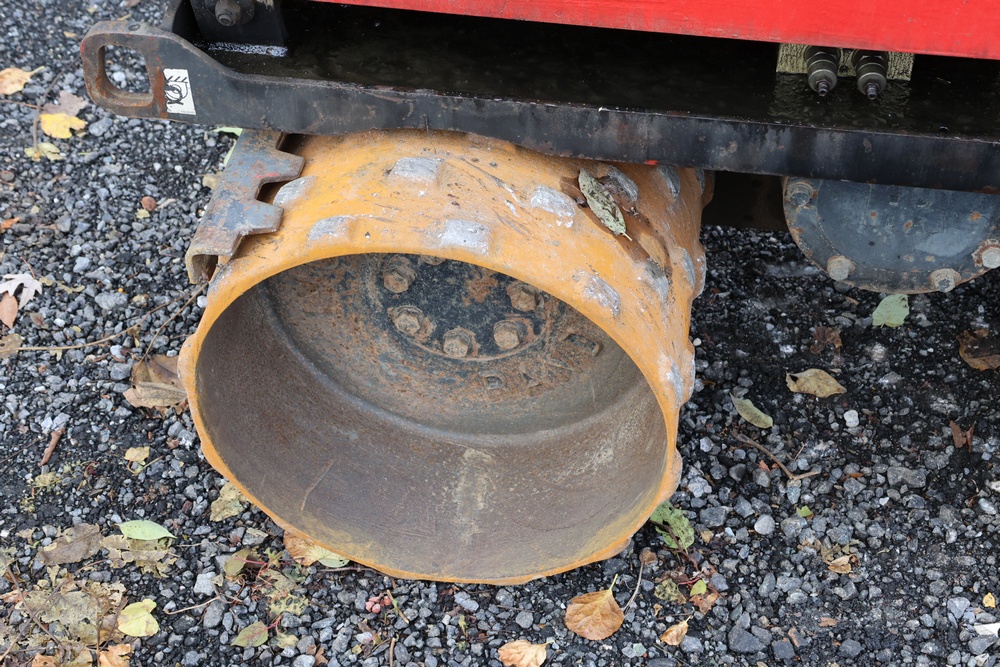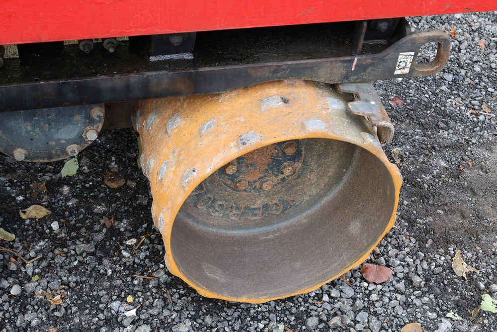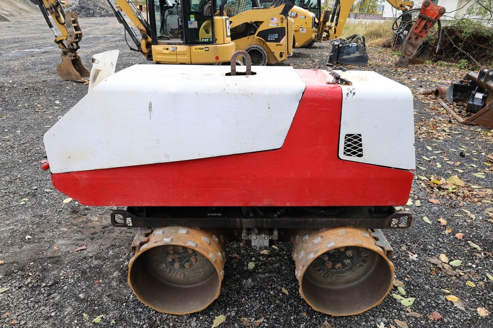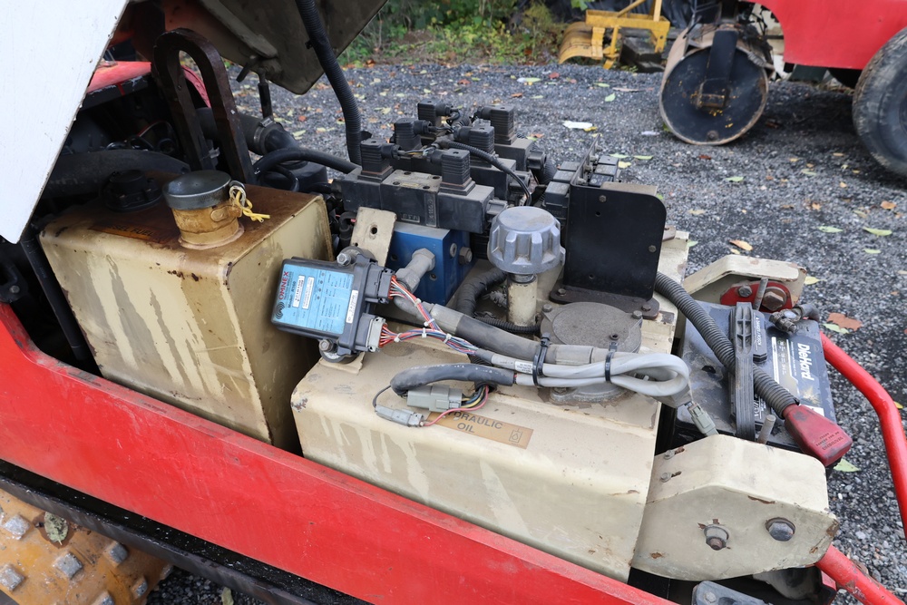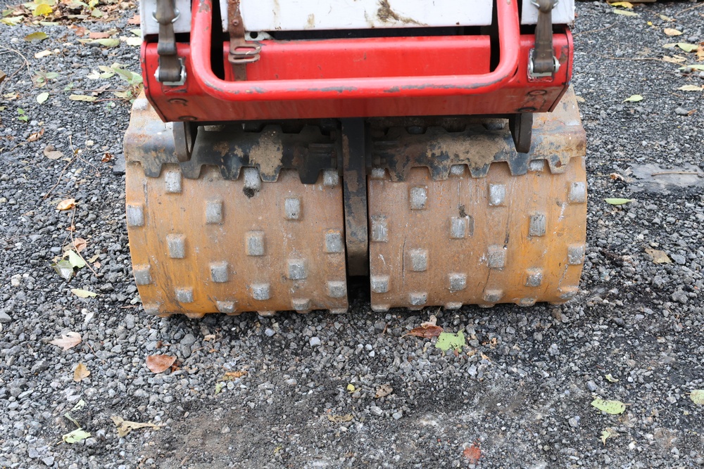 Ingersoll Rand Compactor. Tag dated 06/00, Identification #V18558, Code 59252338/EX. Remote-Controlled Padfoot Trench Roller with Four Steel Drums, Protective Engine Cover, and Omnex R160 Wireless Control System. Runs and operates as intended. Hour meter not functional.