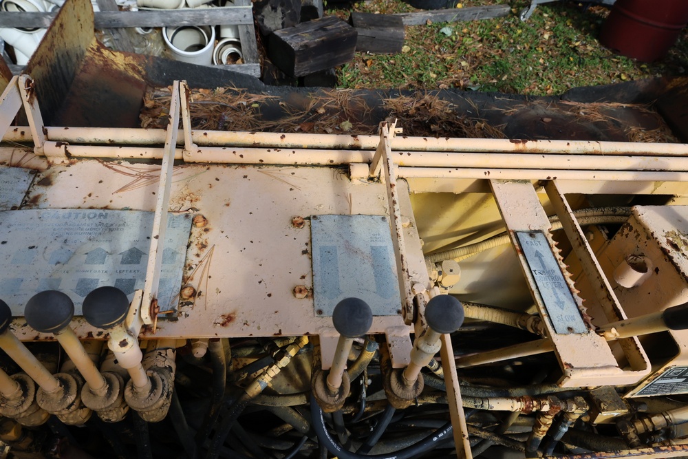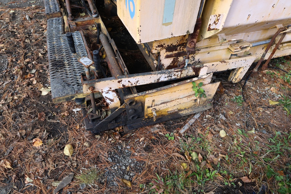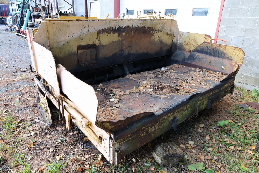 Puckett Bros. Power Box Asphalt Paver, Model T650B, Serial #PBP87J3094. Hour Meter Reading: 2,018 hours. Approximate Weight: 10,000 lbs. Powered by Diesel Engine. Hydraulic Controls for Auger, Conveyor, and Screed with Multiple Levers. Hopper Feed System with Chain Conveyors, Adjustable Screed, and Hydraulic Extensions. Seller reports ran when parked, sat for a couple of years.