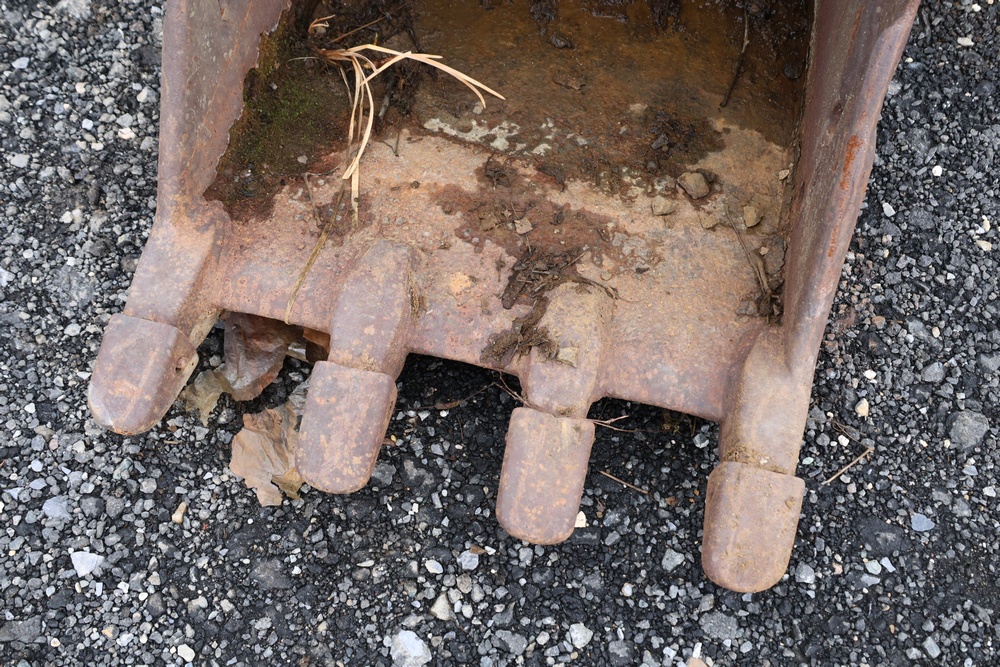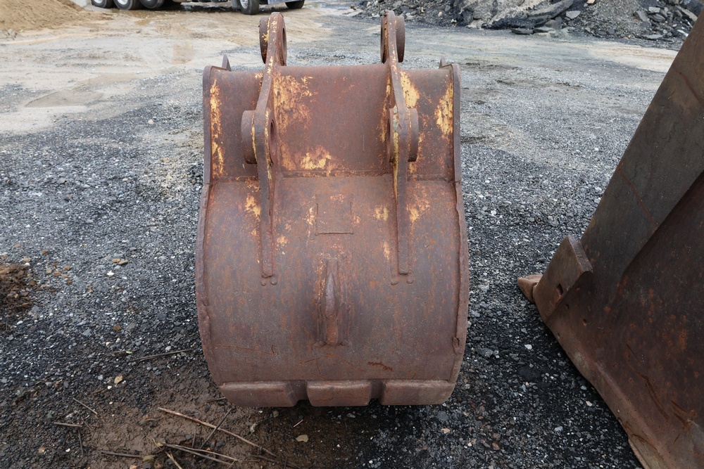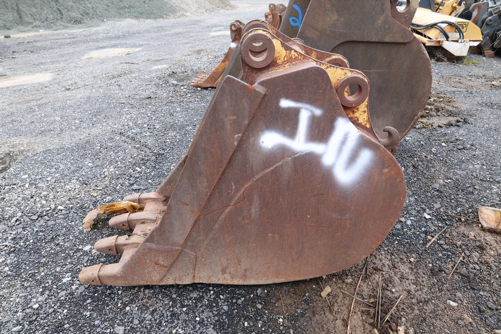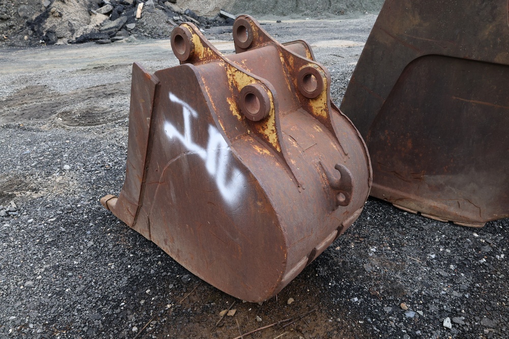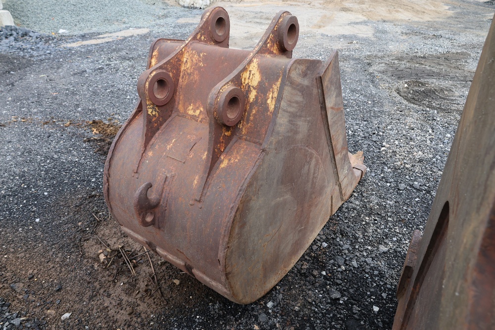 Excavator bucket appears to be a general-purpose digging bucket with four teeth, designed for a mid-sized excavator. The casting marks on the side show partial identification, possibly reading "9G6062" or "9G6069", which aligns with Caterpillar (CAT) bucket part numbers used for 315/320 class excavators.