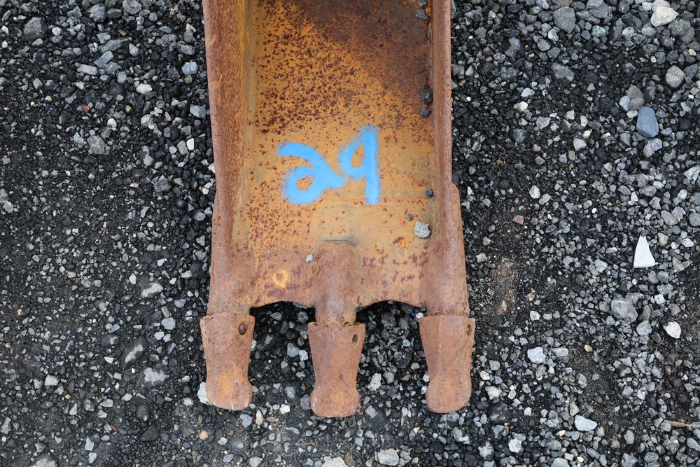 Cat steel backhoe bucket with three replaceable teeth. For use with CAT 416 or older 420 backhoe.