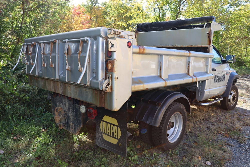 Items include 2018 Ford E-350 Super Duty bus; 2008 Dodge Ram 5500 dump truck & two-yard spreaders. Items are located in Highland Falls, NY.