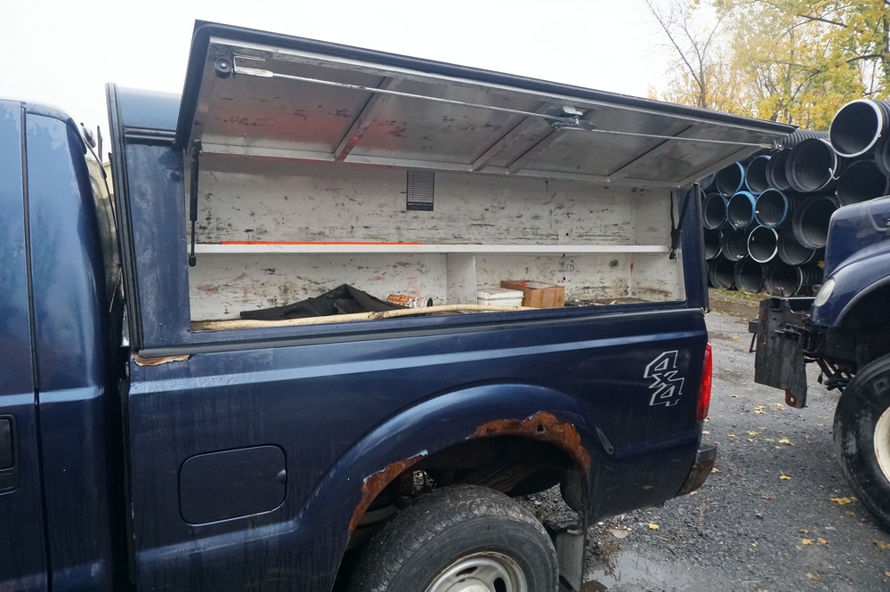 Items include 2015 Ford F350 XLT, 1993 Caterpillar 416b Backhoe Loader, 2010 Freightliner M2112V Dump Truck, Guardian Power Drill Press, 2008 Volvo VHD648 Dump Truck, 2001 Mid-Atlantic Dump Body Trailer, and more. Items are located in Plattsburgh, NY.