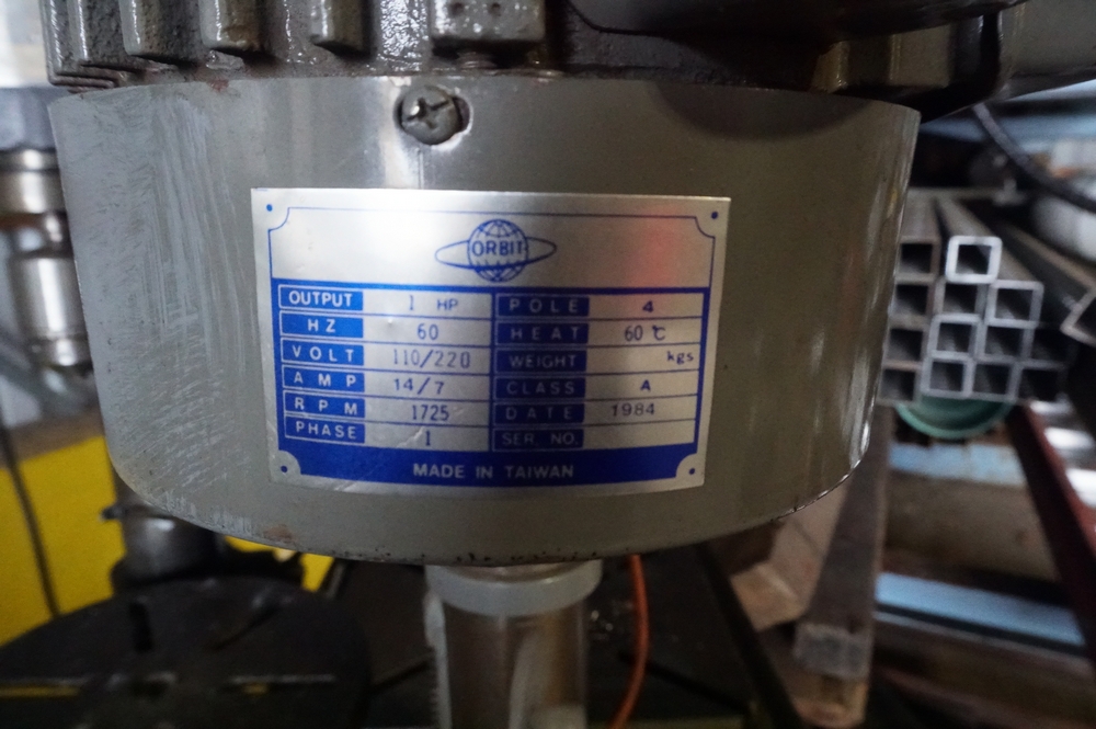 1987 Orbit Drill Press. Model: OR-20501F. SN: DP-4021679. 3/4" Chuck. HP: 1. Seller States; Not functioning properly. Possible issue with chuck.