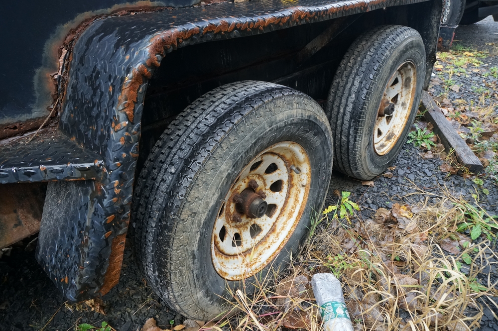 2001 Mid-Atlantic Dump Body Trailer. VIN: 5ANCD10234R002534. 10' L X 81.5 W. Battery Powered hydraulic Dump Body. Steel Bed. Owner States: Dump body operates as it should. Has bent axle or broken hub. Includes Title.