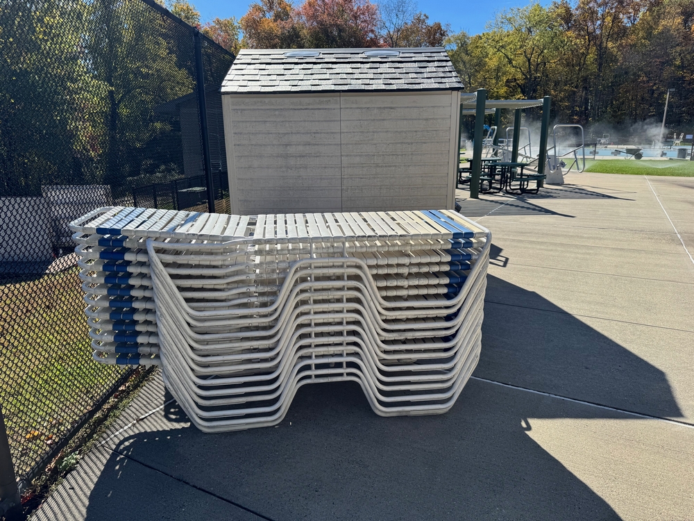 Items include pool lounge chairs and pool grating. Located in Yorktown Heights, NY.