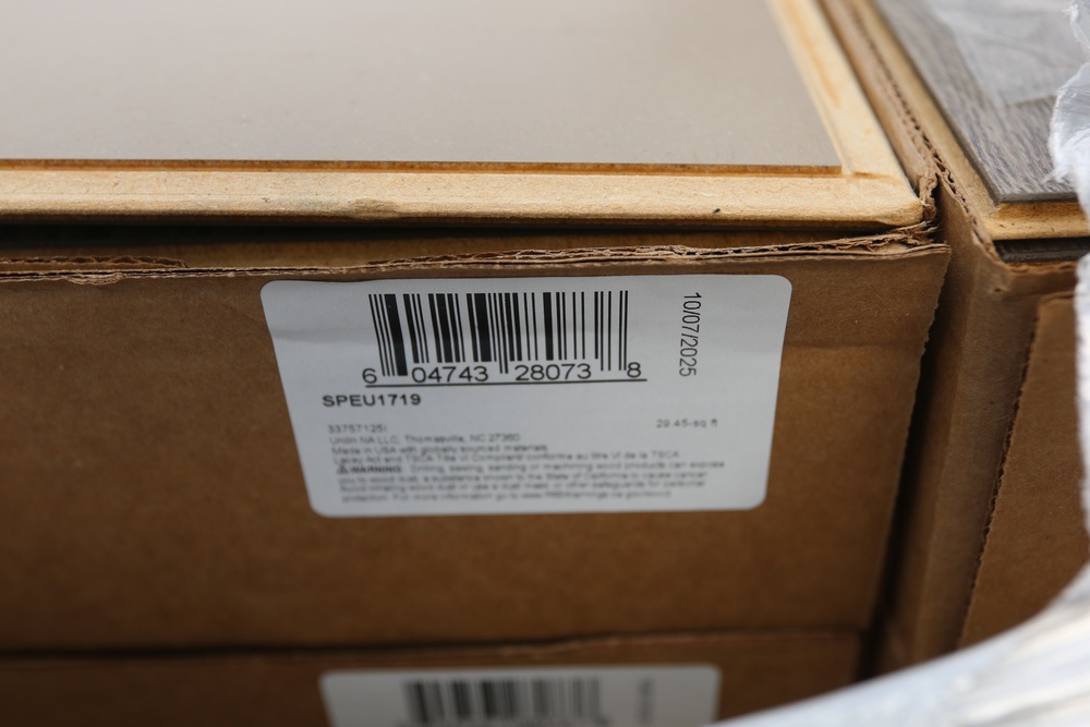 Lot is for 45 cartons of new laminate flooring. 29.45 square feet per carton. 1325.25 total square feet. Manufacturer is Mohawk. Product is Birkhall Walk Stone Cliff Oak. This product is Waterproof. Uni-Clic floating locking system. 2nd quality indicating up to 10% of product may have minor imperfections such as markings, off-shade, blister/missing spot of wood grain, sample board.