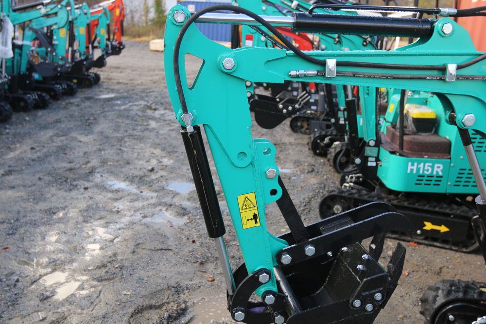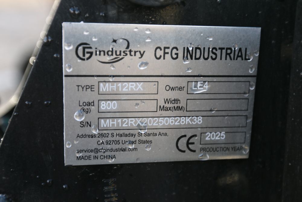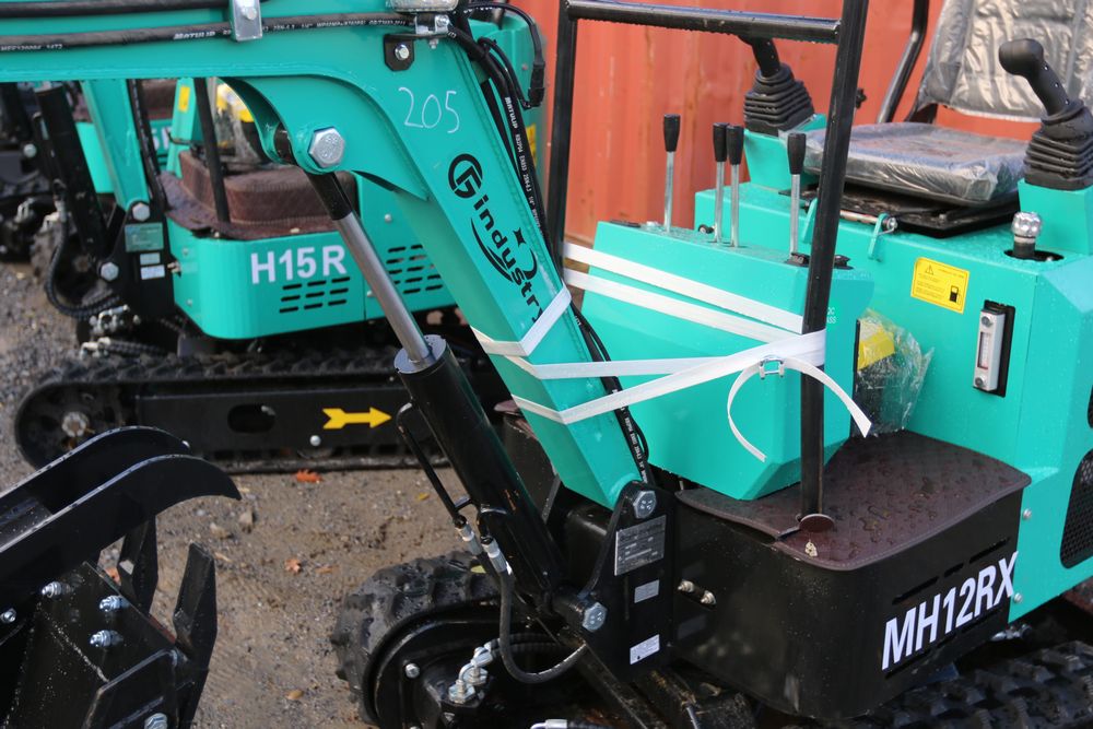 New 2025 CFG Industrial MH12RX mini excavator with bucket, thumb, gas engine. Hours reading less than 1 hour.