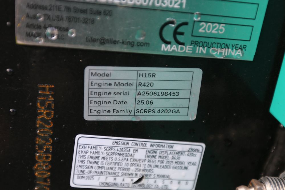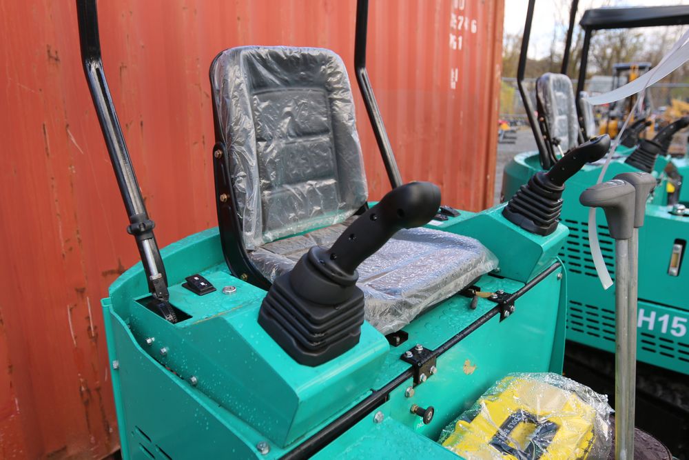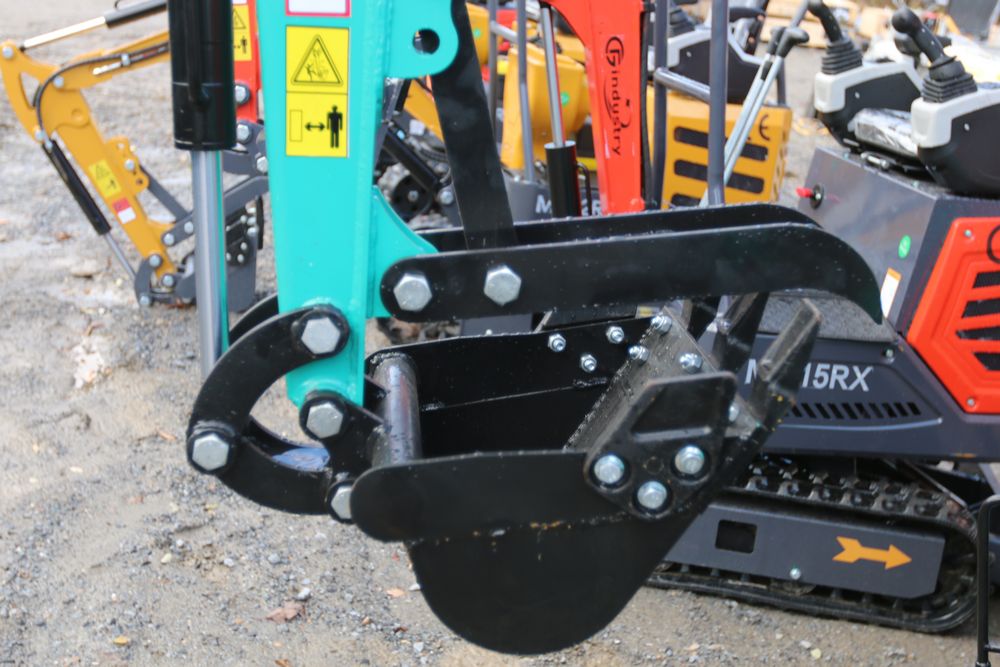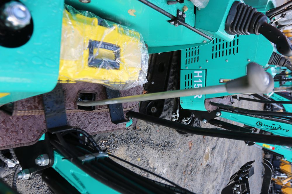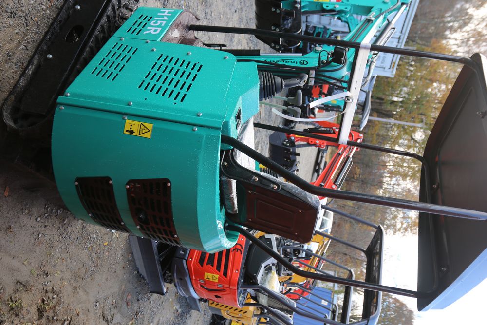 New 2025 CFG Industrial industrial gas powered mini Excavator model H15R with 420cc gasoline engine, bucket, 4' long tracks, 38.5" wide base, 6" wide tracks, canopy, hydraulic boom & bucket controls, pilot system, thumb, dozer blade.
