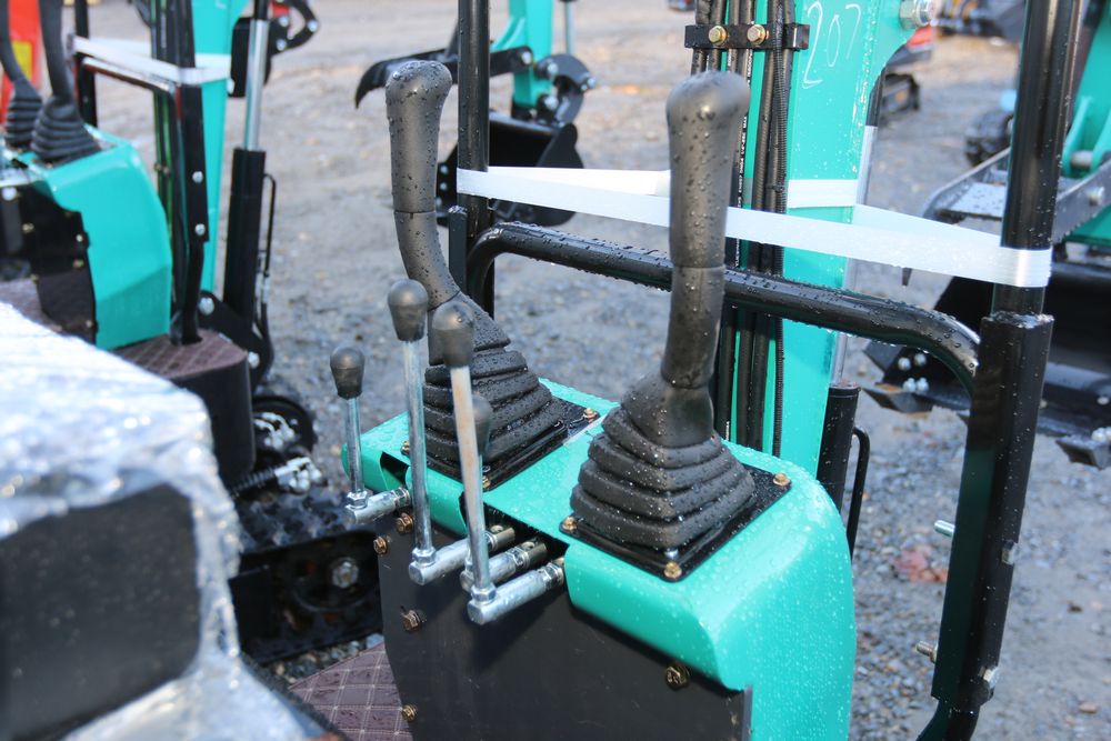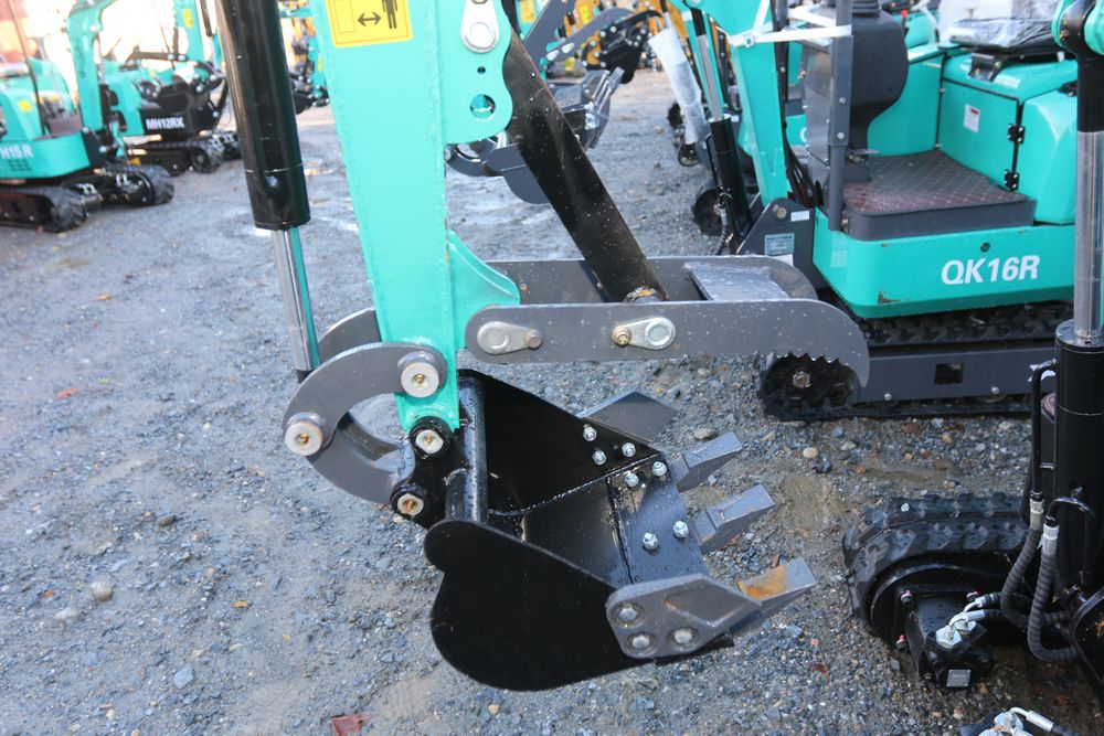 New 2025 CFG industrial gas powered mini Excavator model QH12R with 420cc gasoline engine, bucket, 4' long tracks, 36.5" wide base, 6" wide tracks, canopy, hydraulic boom & bucket controls, dozer blade. Hours reading less than 1 hour.