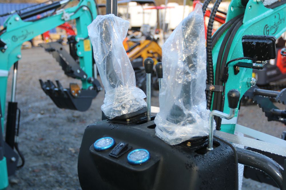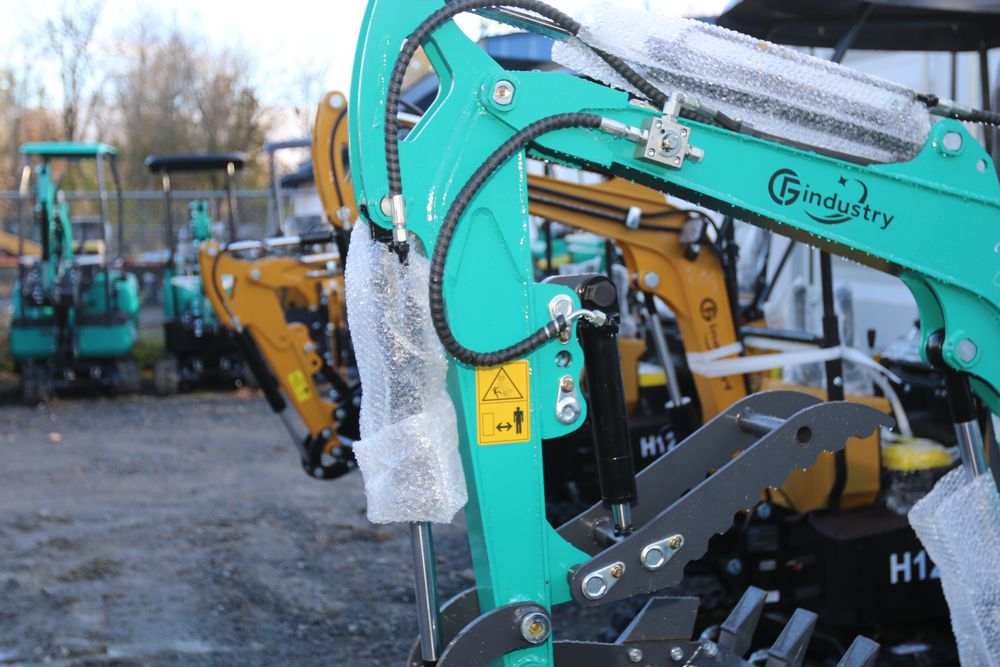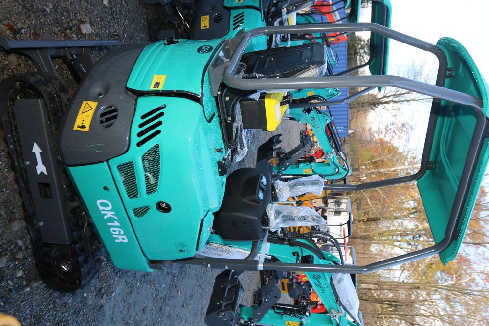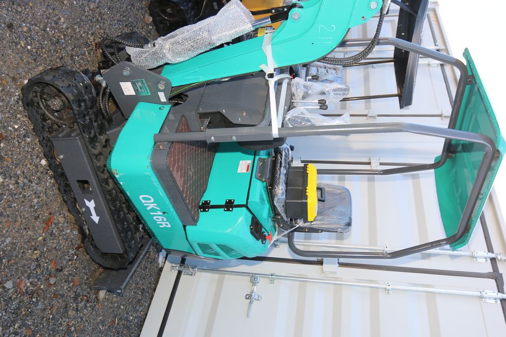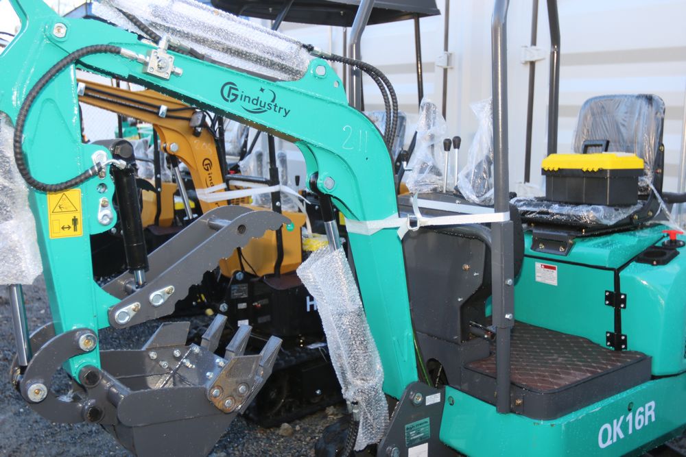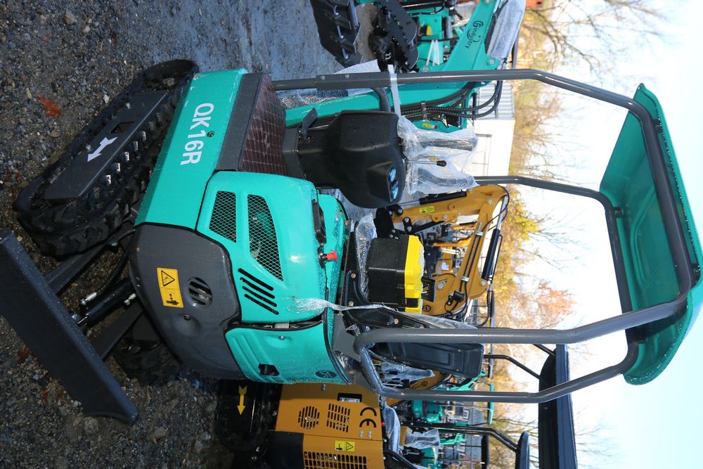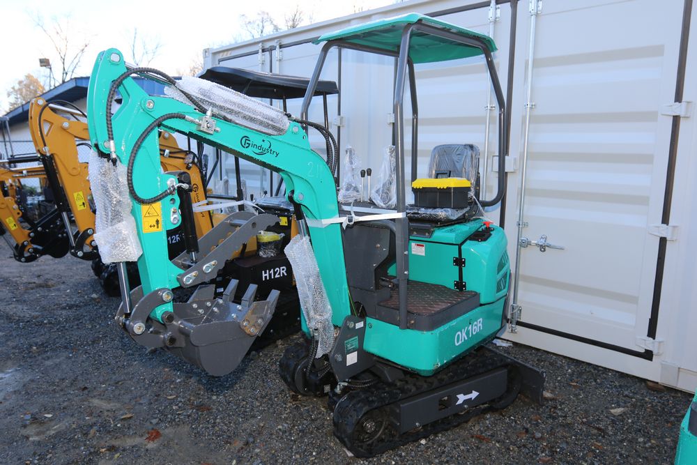 New 2025 CFG industrial gas powered mini Excavator model QK16R with bucket, dozer blade, aux hydraulics, engine model R420, 920KG load, with canopy cover. Hours reading less than 1 hour.