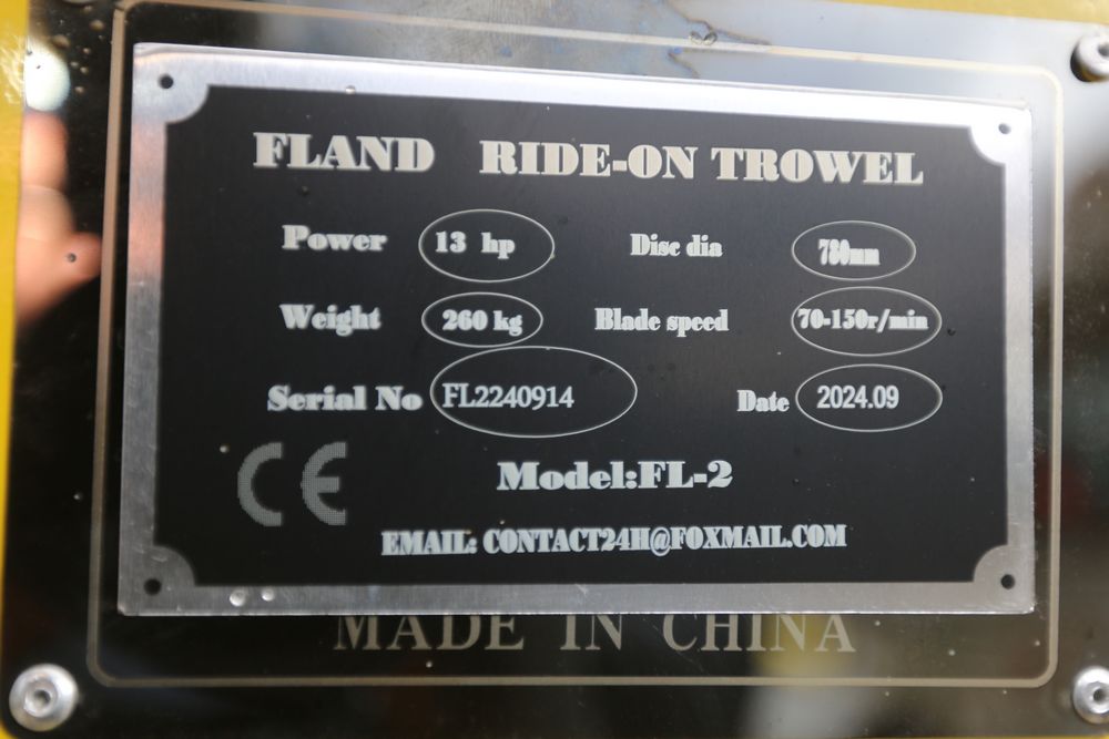 New 2025 FLAND ride on power trowel model:FL-2 with 70-150 r/min blade speed and 1600mm working diameter.