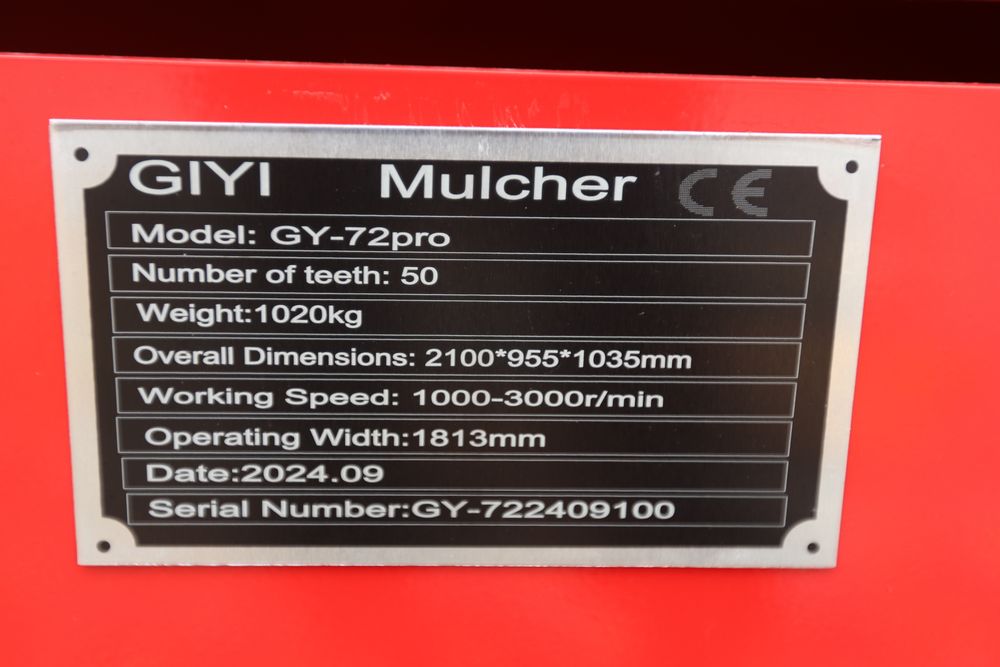 New 2025 GIYI skid steer mulcher model: GY-72pro with 50 teeth operating width of 1813mm.