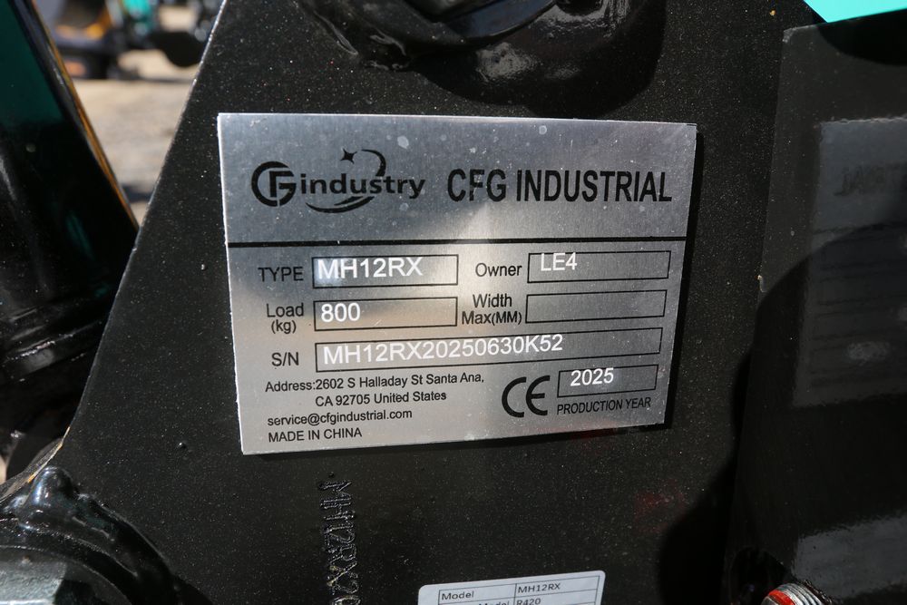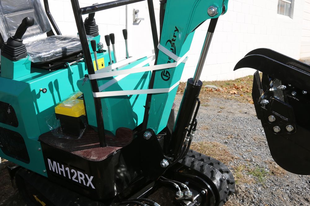 New 2025 CFG Industrial MH12RX mini excavator with bucket, thumb, gas engine. Hours read less than one hour.