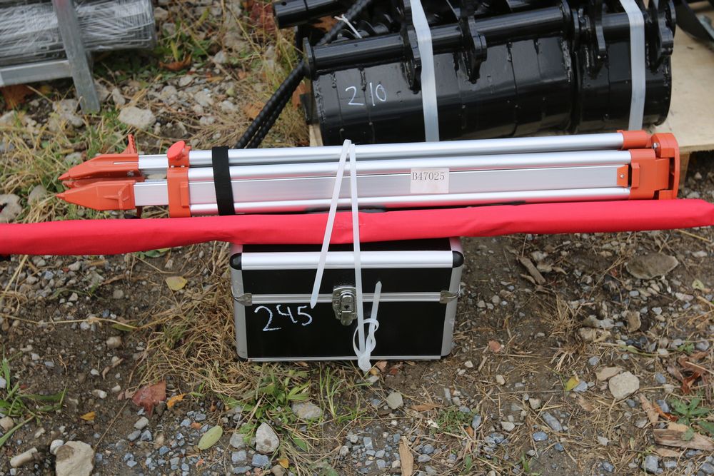 New SKLP self-leveling rotary laser level with batteries, receiver, tripod, and grade rod.