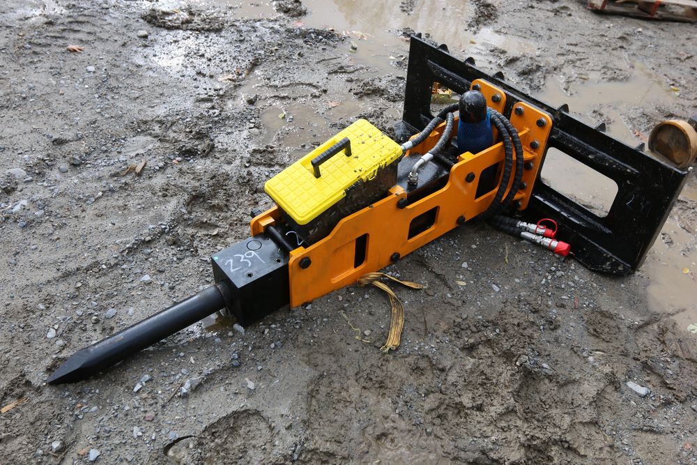 New 2025 GIYI skid steer breaker with 68mm drill rod diameter and 450-750 bpm strike rate.