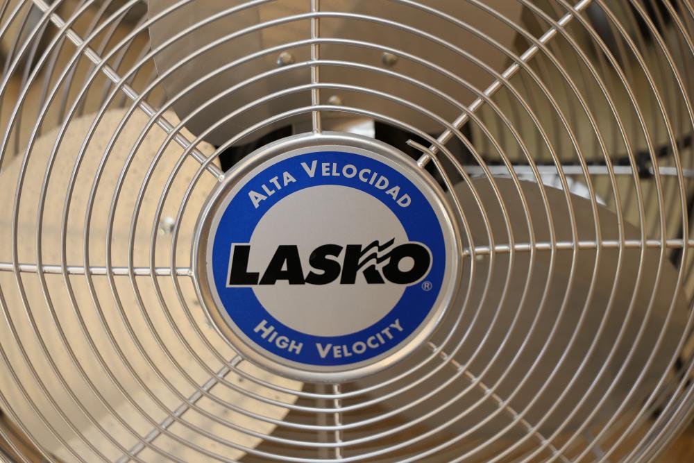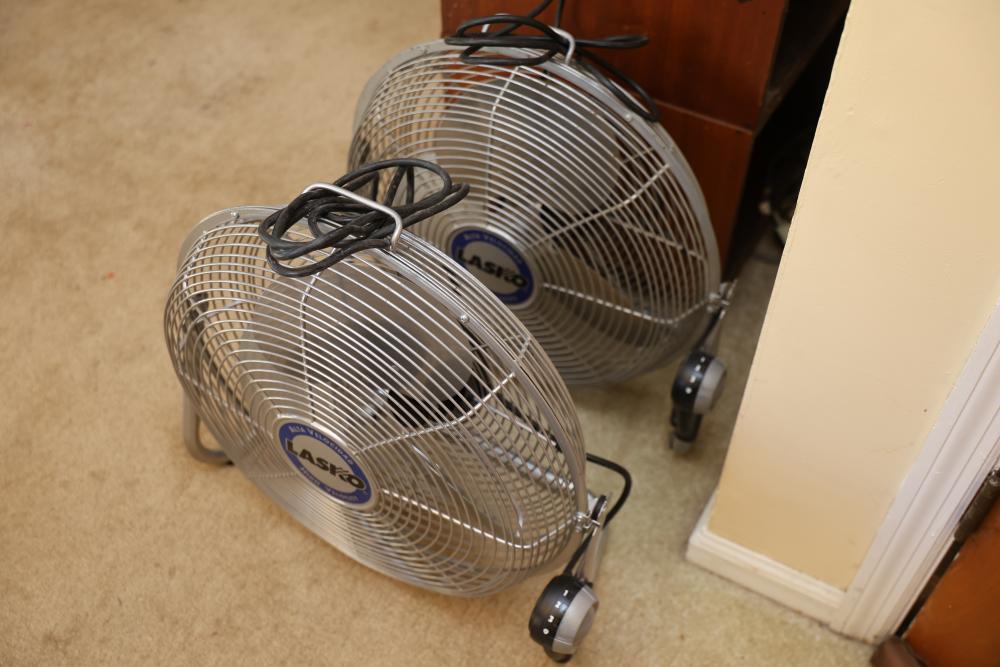 High-velocity fans by Lasko, Patton, and Lakewood includes three circular metal fans with protective grilles and one square box fan. Designed with sturdy frames, some models feature built-in wheels or handles for portability. Buyer must take all. Pickup only.