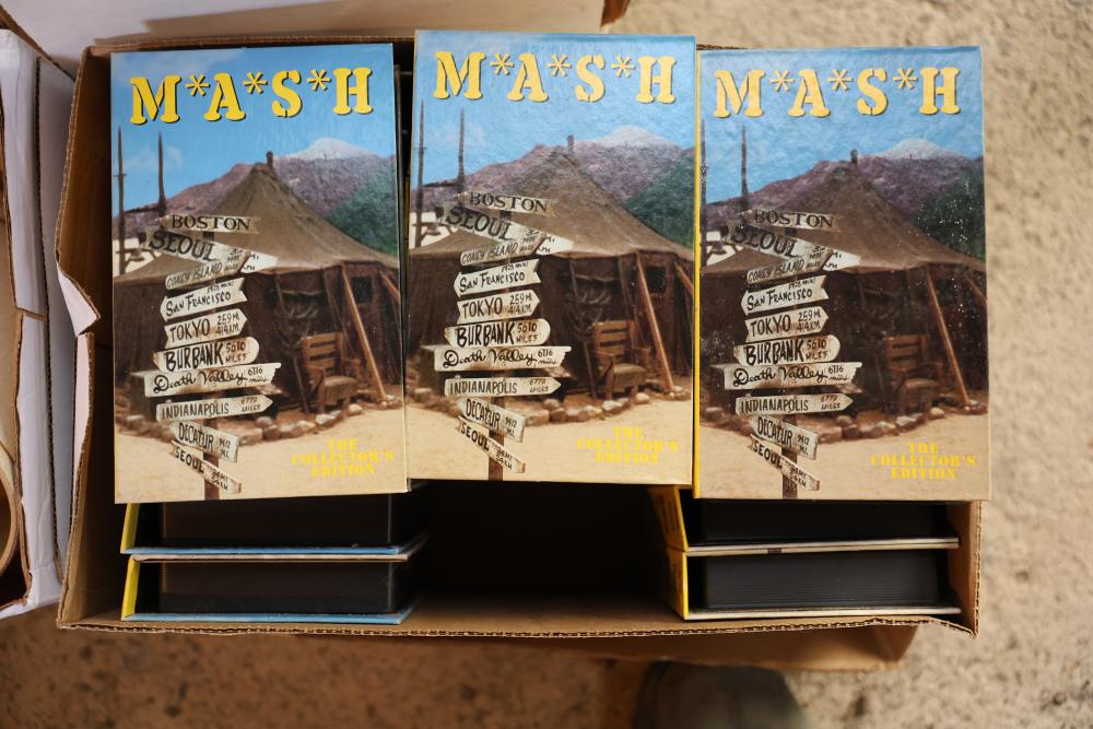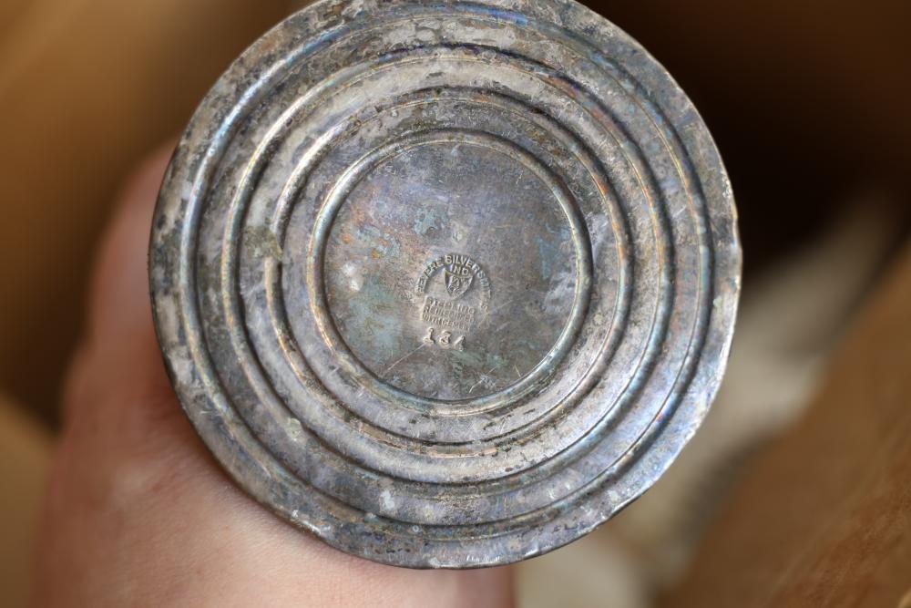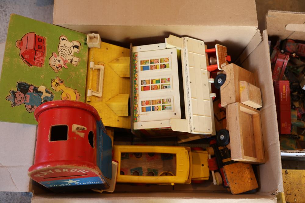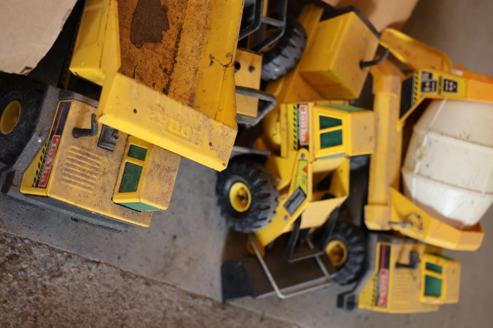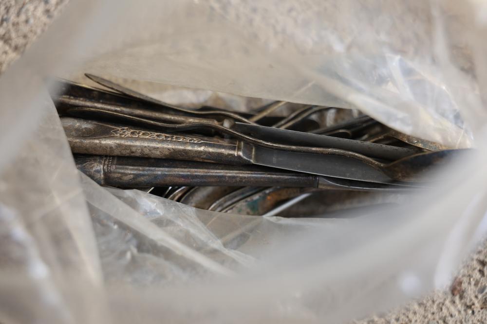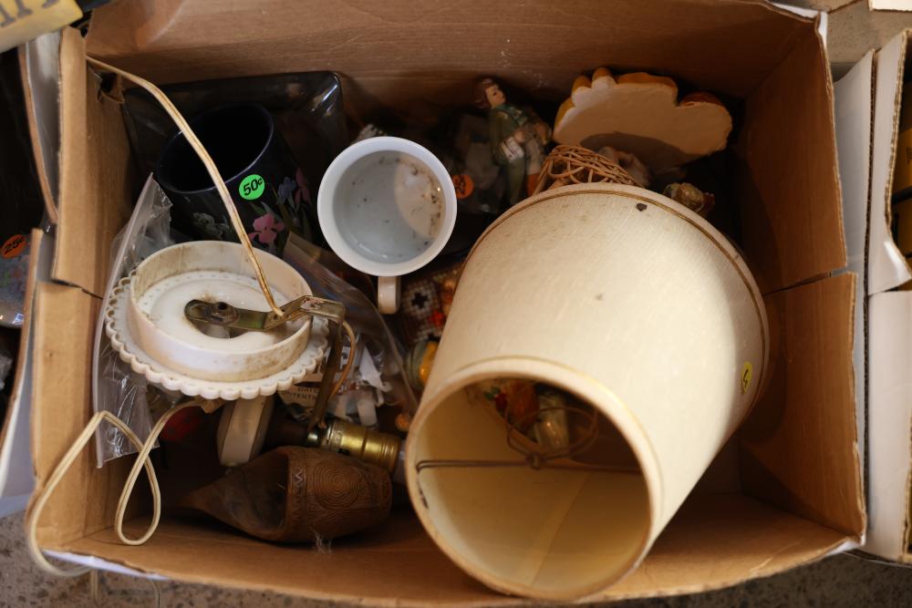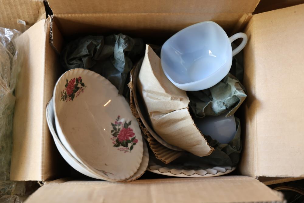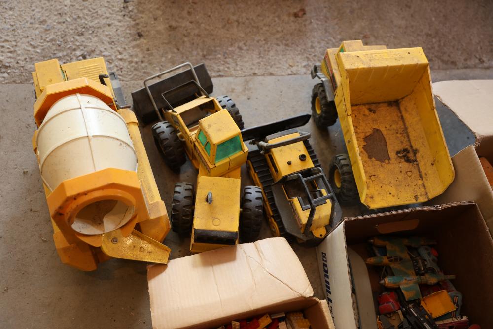 Toys, DVDs, Kitchenware, Decor, and Metal Items. Includes a collection of toy construction vehicles, loose building bricks, various small die-cast vehicles, DVDs and VHS tapes, multiple ceramic and glassware items, seashell decor, a pair of silver candlesticks marked on the bottom, metal utensils, festive home decor, and a boxed Yankee Stadium puzzle. Buyer is responsible for all help and materials necessary for safe and proper removal. Does not include other lots. Buyer must take all. Pickup only.