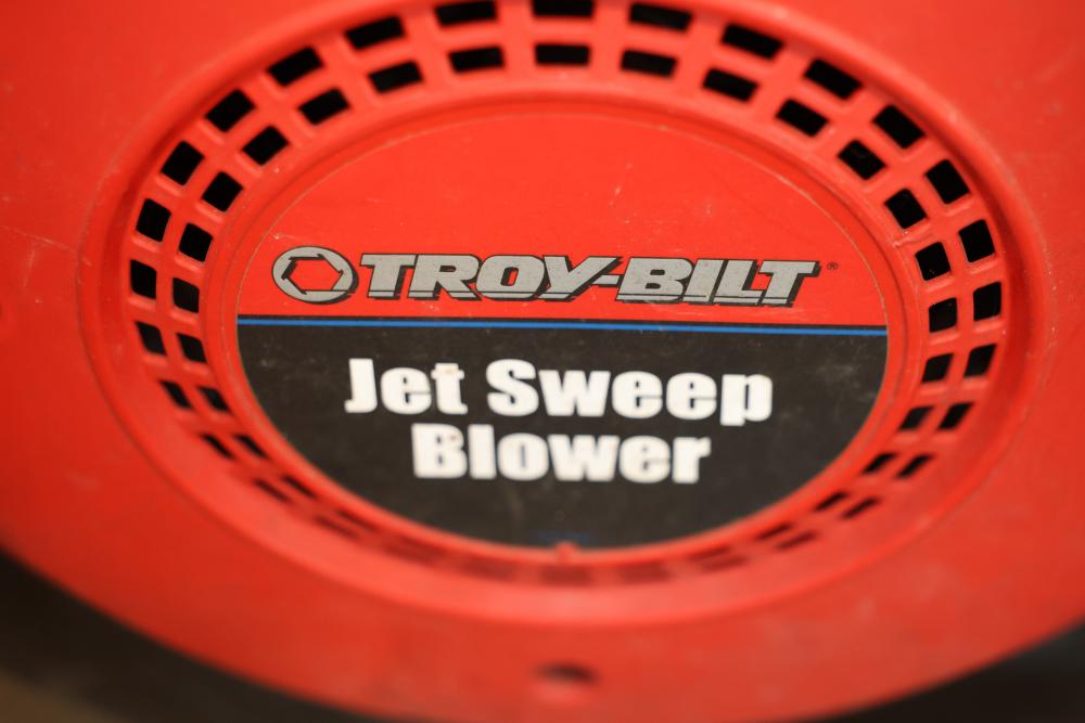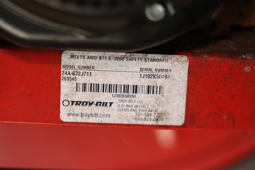 Troy-Bilt Jet Sweep Blower, Model 24A-672J711 with Briggs & Stratton 8.00 Gross Torque engine. Includes specifications that comply with ANSI B71.6-2000 Safety Standard. Features durable construction and ergonomic handle. Pickup only.