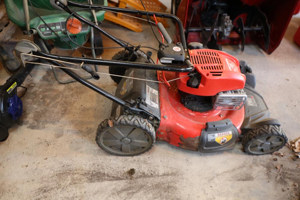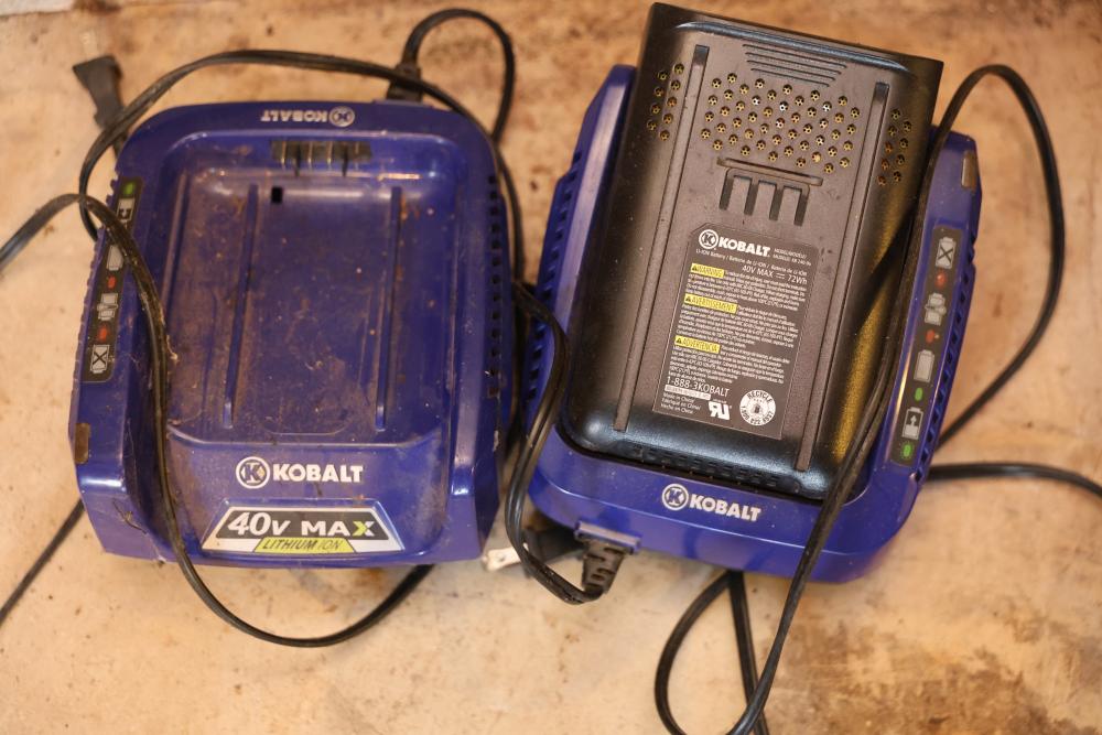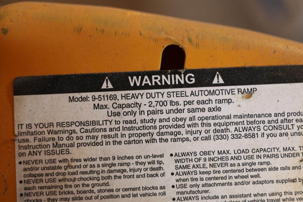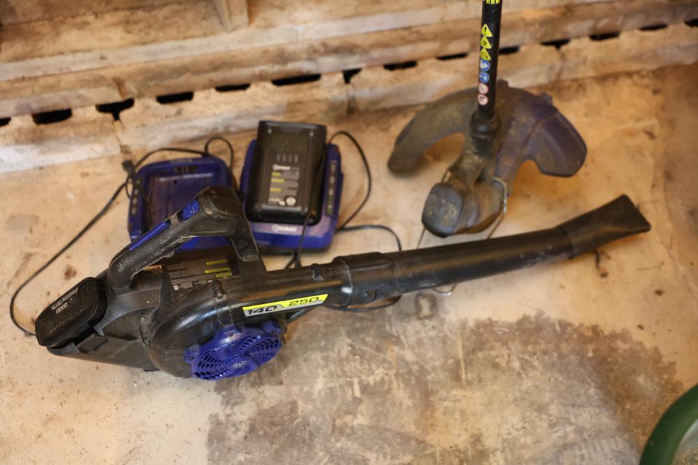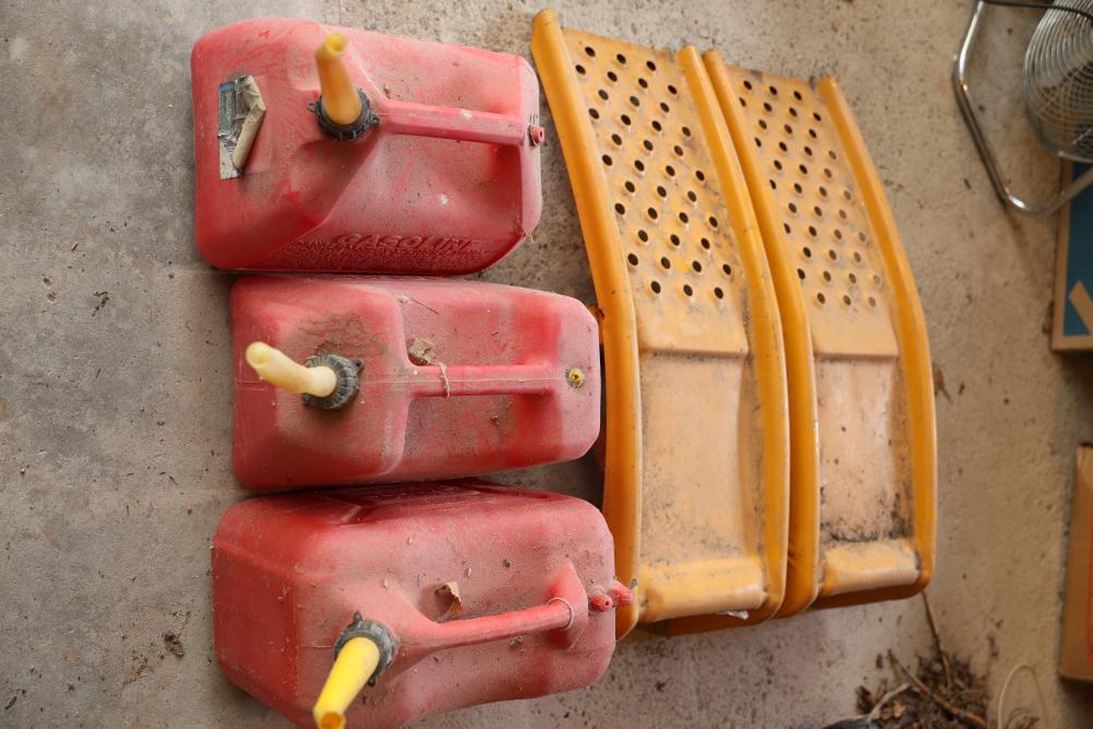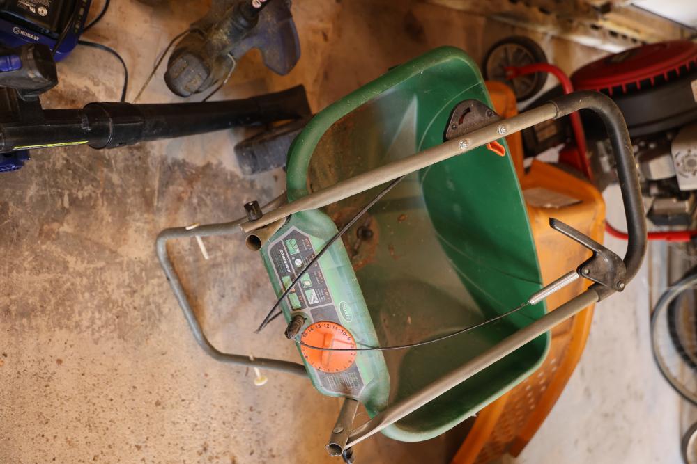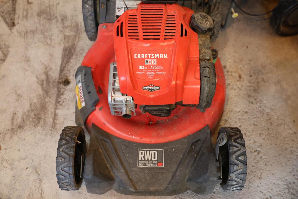 Craftsman M310 Lawn Mower with a 163cc, 7.25 ft-lbs torque Briggs & Stratton engine, Model TAZVP28793, DOM 03/2019. Kobalt KHB 300 40V MAX Leaf Blower and Kobalt KST 130X-06 String Trimmer with 40V MAX lithium-ion charging system. Scotts EdgeGuard Mini Broadcast Spreader with adjustable spread settings. Heavy Duty Steel Automotive Ramps, Model 9-51169, with 2,700 lbs capacity per ramp. Three red polyethylene fuel containers. Buyer is responsible for all help and materials necessary for removal. Buyer must take all. Pickup only.